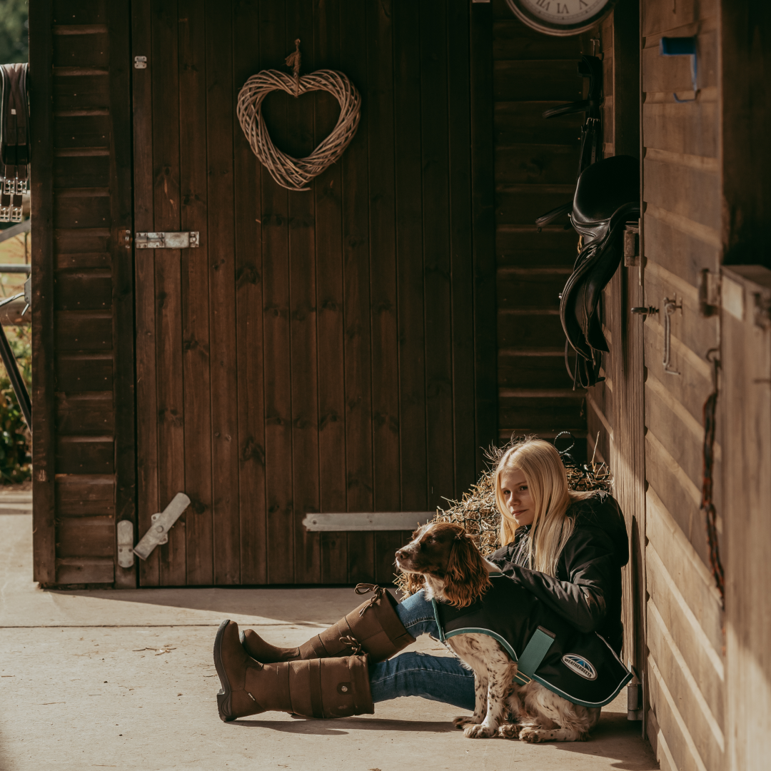 The Weatherbeeta Green-Tec 900D Dog Coat Medium is a waterproof and breathable 900D PCR outer made from recycled bottles with a strong 150 denier diamond weave lining PCR fabric, also made from recycled bottles and 220g of warm polyfill.