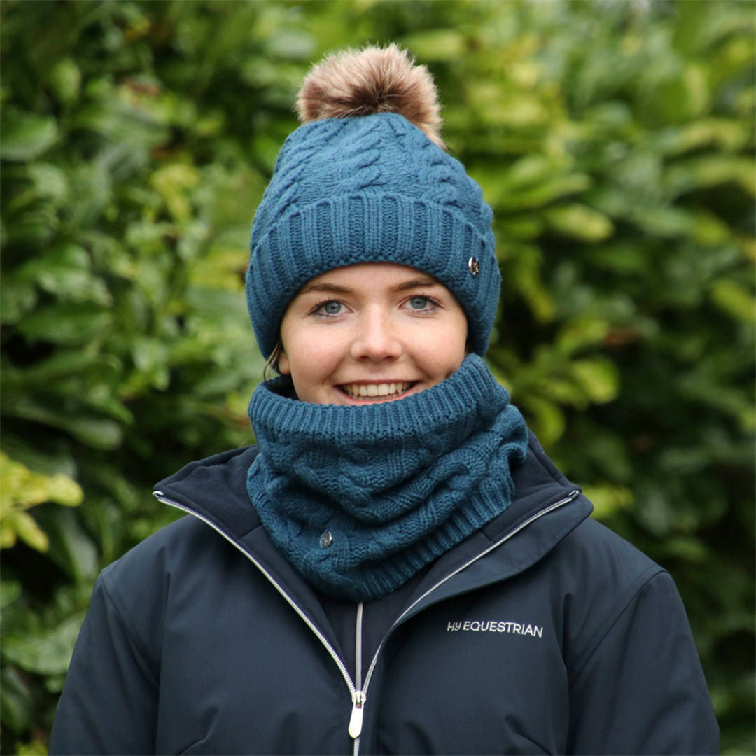 The Hy Equestrian Melrose Cable Knit Bobble Hat is a perfect fashion accessory for the style-conscious Equestrian, who wants to stay warm and cosy against the cold weather.