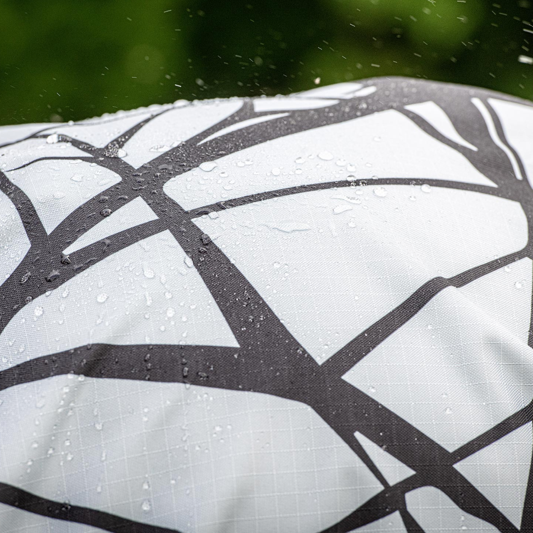 - The unique print is inspired by the pattern of a fly’s wing. The layered black lines on a grey background acts to create an optical illusion in the eye of a fly.