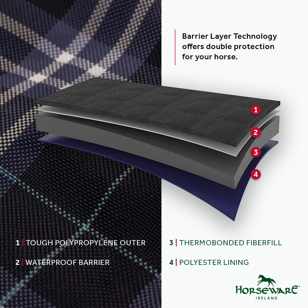 Horseware Ireland Rhino Plus with Vari Layer Medium 250g - Navy Check/Teal / 5'6 is backordered and will ship as soon as it is back in stock.