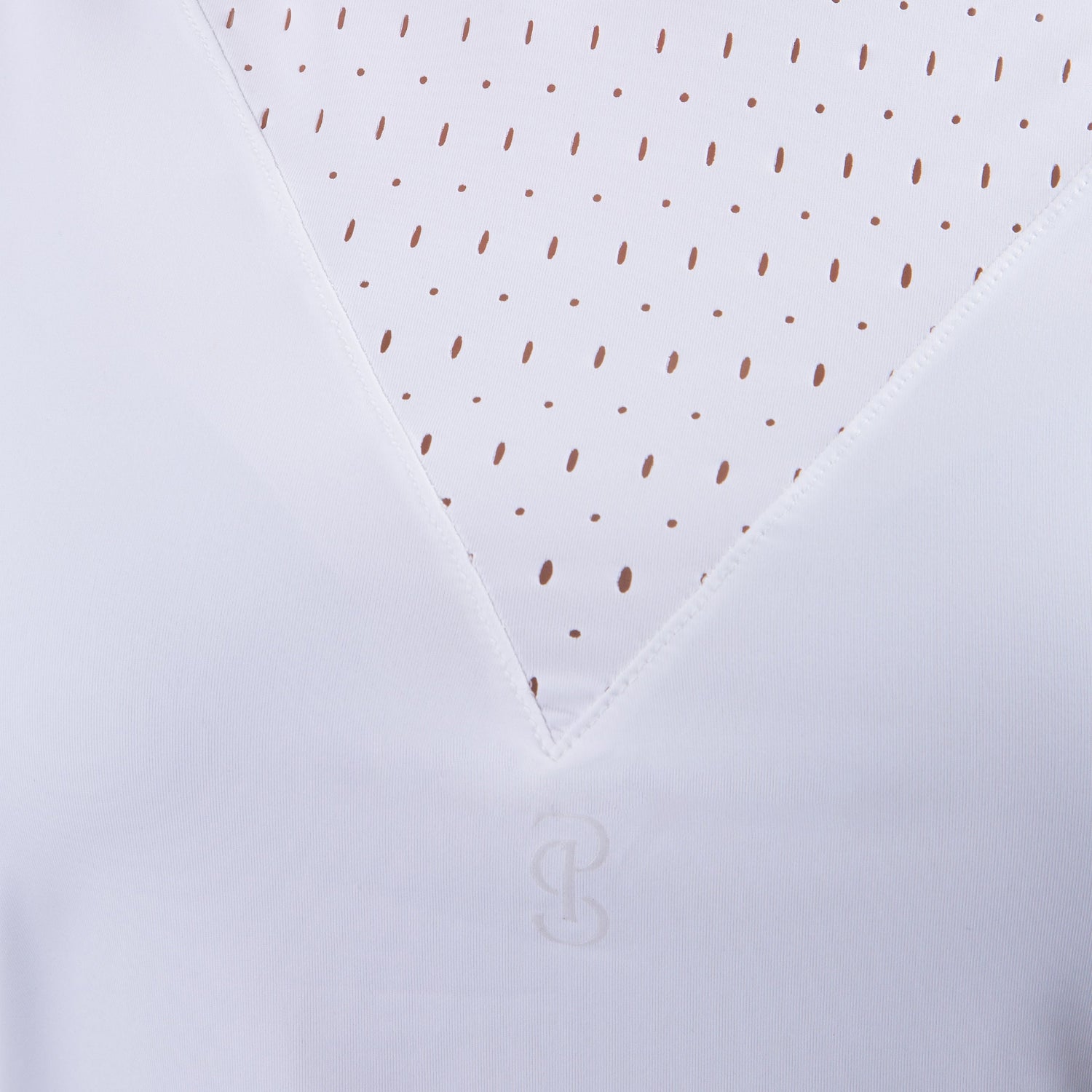 The PS of Sweden Dahlia Sleeveless Competition Top is a must-have for any competition rider. With breathable, quick-drying fabric and a laser-cut pattern inspired by Broderie anglaise, it keeps the rider cool and comfortable while adding a touch of style. Featuring ventilation, a double collar stand, and superior quality, this shirt is both functional and fashionable.