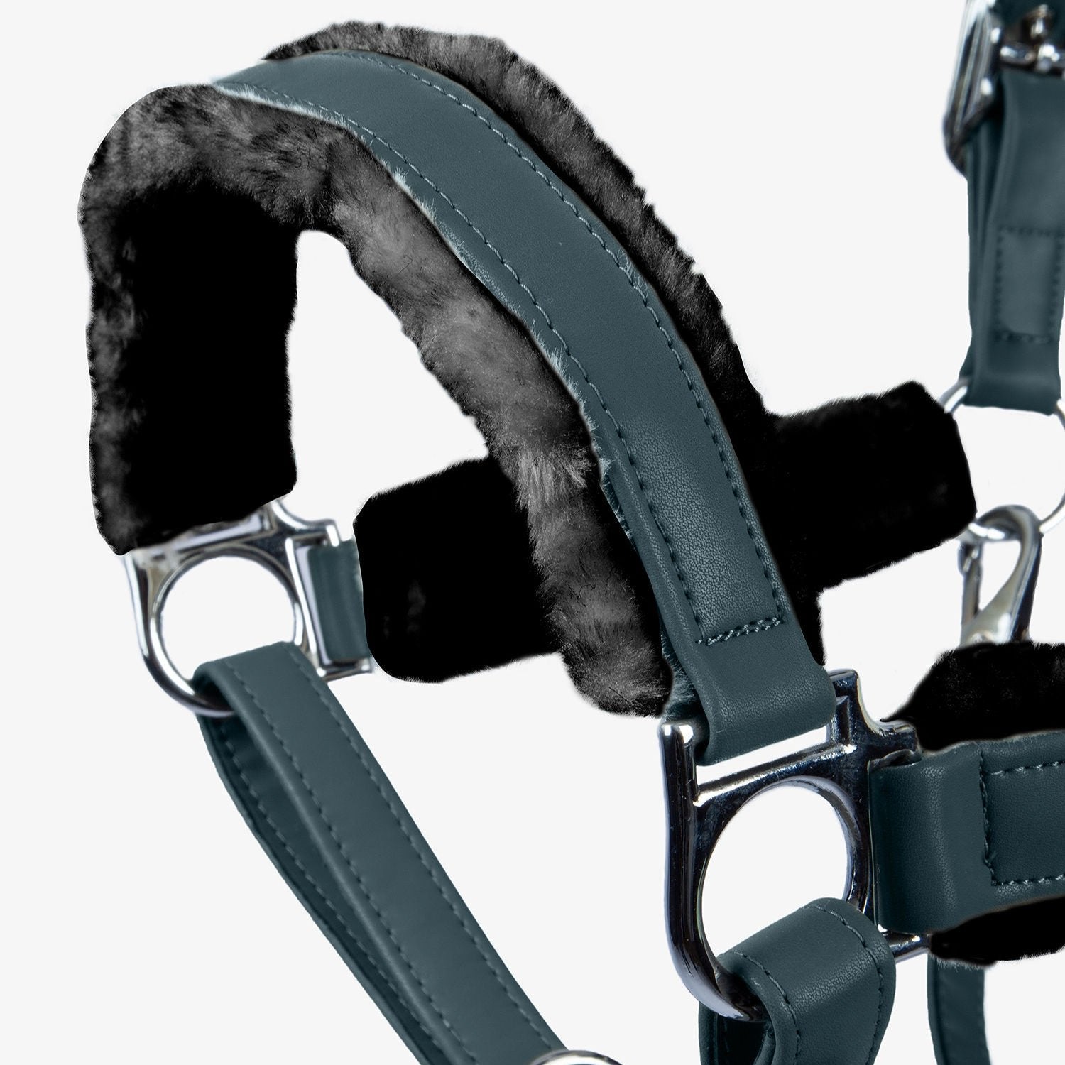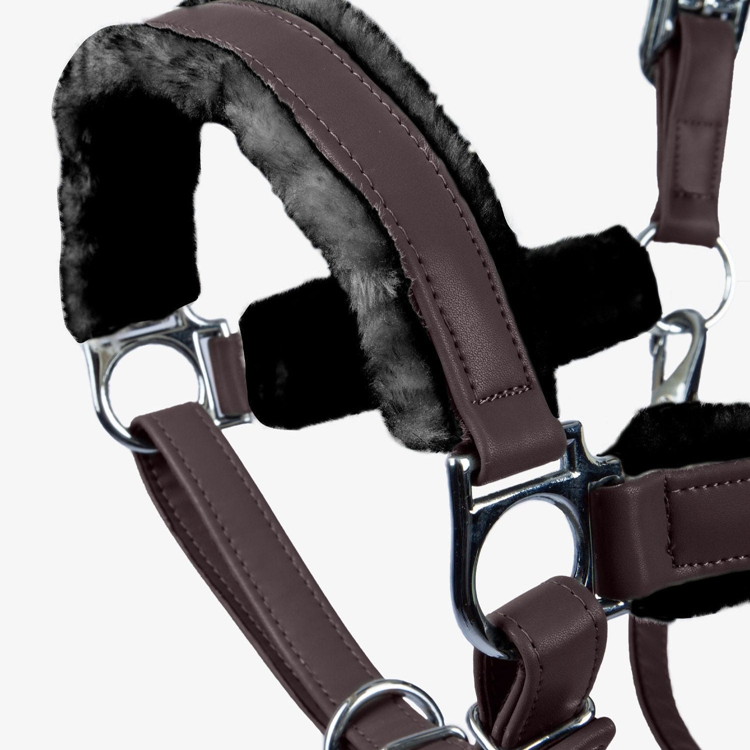 The PS of Sweden Premium Fluffy Halter features a leather imitation design that perfectly complements your premium brushing and bell boots. Its anatomical shape, reinforced nylon webbing, and soft faux fur lining provide maximum comfort for your horse.