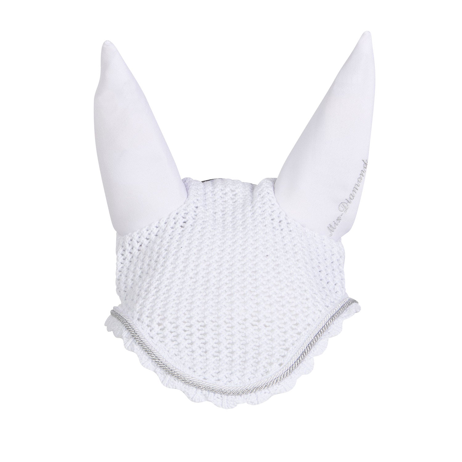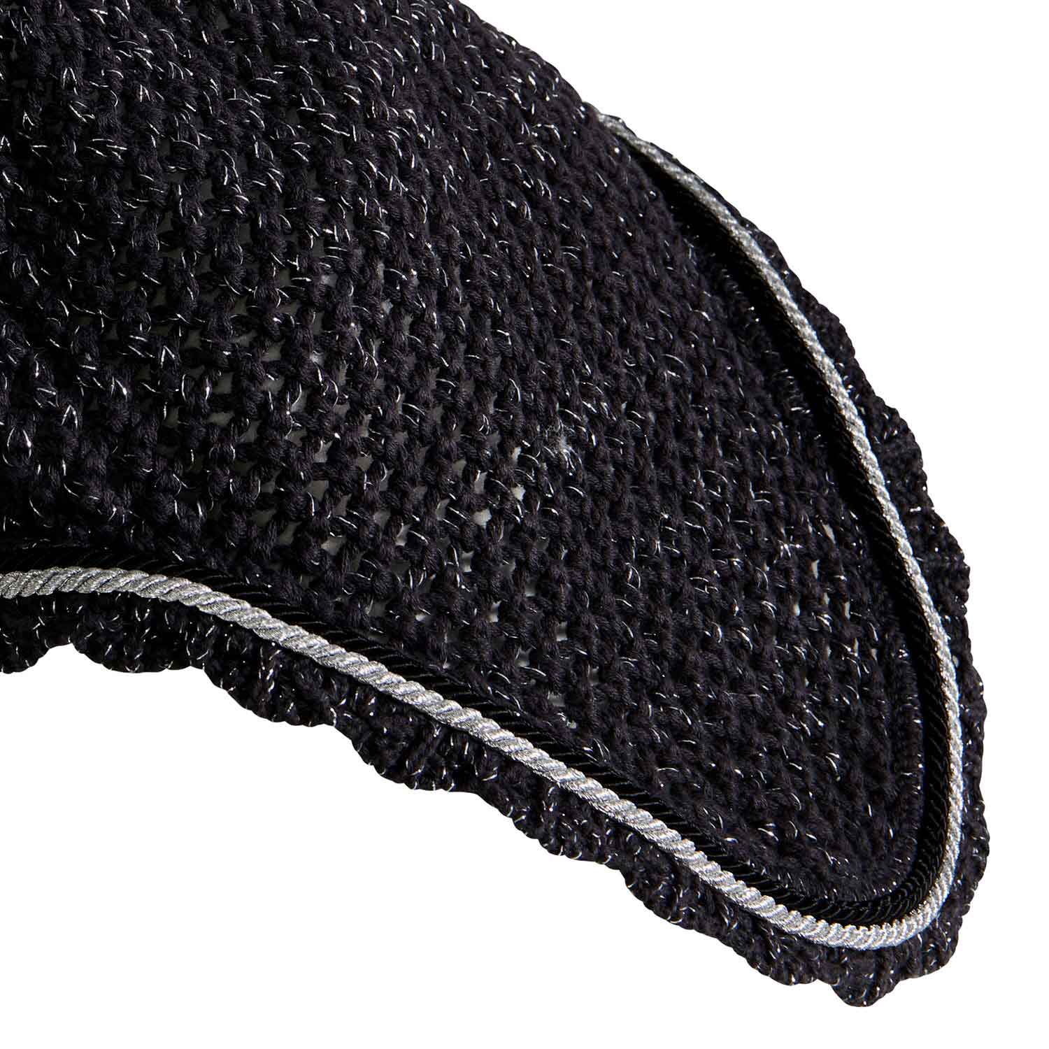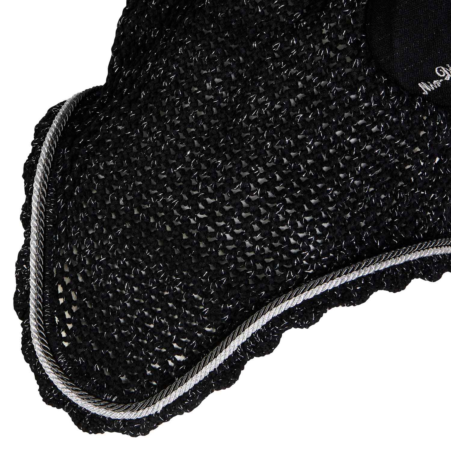 Protect your horse in style with the Equestro Cotton Fly Veil featuring durable Cordura fabric and elegant glitter accents. Its diamond-knit cotton design with elastane inserts offers a comfortable fit while shielding ears from insects and reducing distracting noises during training. Combining functionality with a touch of sparkle, this fly veil ensures your horse stays focused and looks exceptional.