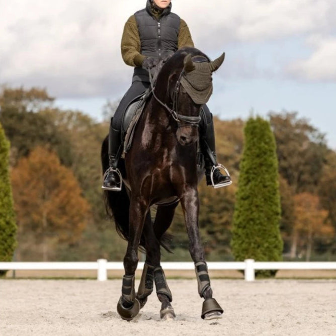 Elevate your horse’s comfort and style with the Waldhausen St. Gallen Fly Ears. Featuring a chic corduroy insert and an anthracite-coloured metal plate, these fly ears combine elegance with function. The elastic material ensures a perfect, comfortable fit, protecting your horse from flies while enhancing its look. A refined decorative cord completes this premium design, making it a must-have accessory for discerning riders.