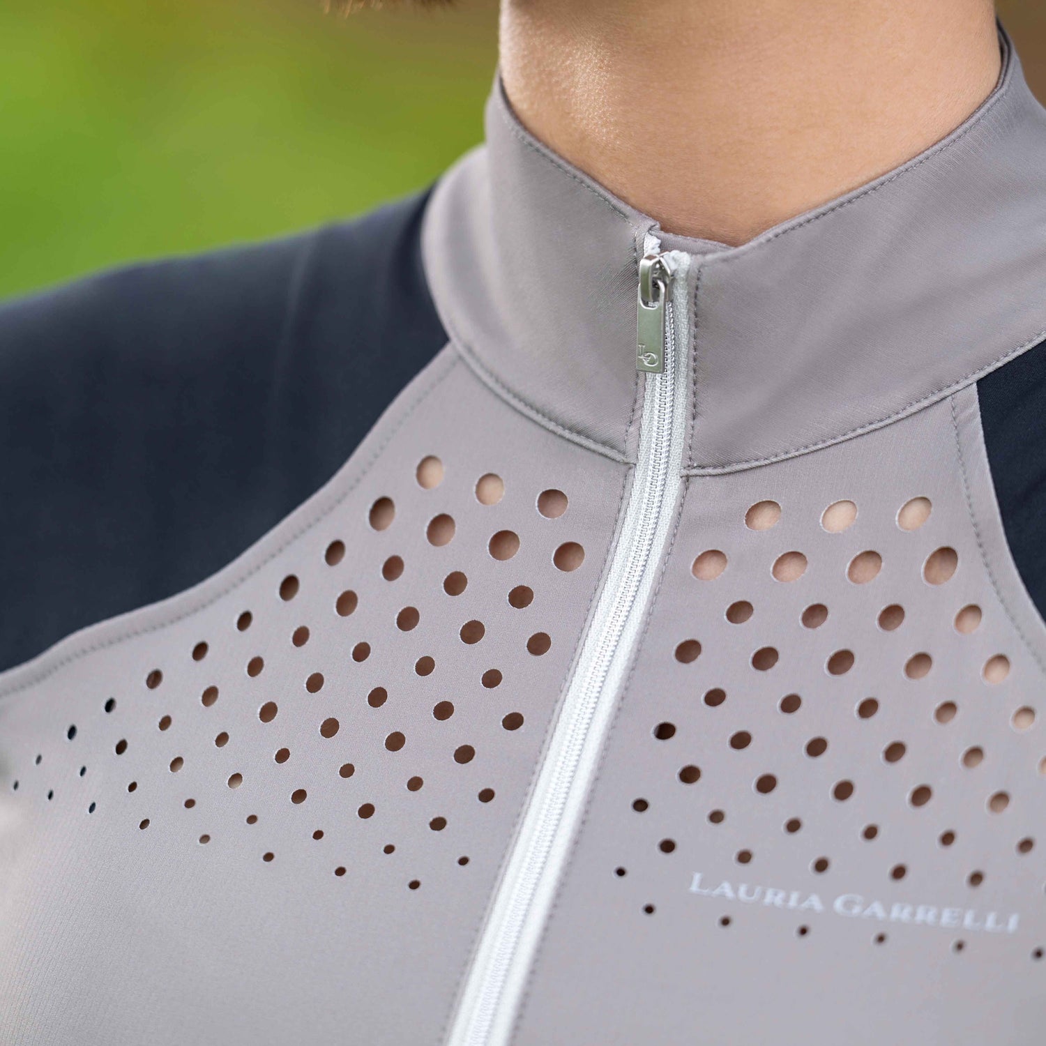 With the functional top Amalfi, the Lauria Garrelli brand presents an exclusive must-have for discerning riders. The breathable material ensures optimum comfort, while the fitted cut elegantly moulds to the figure. The high-quality workmanship is particularly evident in the fashionable laser-cut design, which not only looks stylish but also ensures improved air circulation. The cap sleeves and sporty zip at the collar give the top a dynamic touch, while the fine details in a contrasting colour create a sophisticated look. Thanks to the elastane content, the functional top offers a perfect fit and maximum freedom of movement.