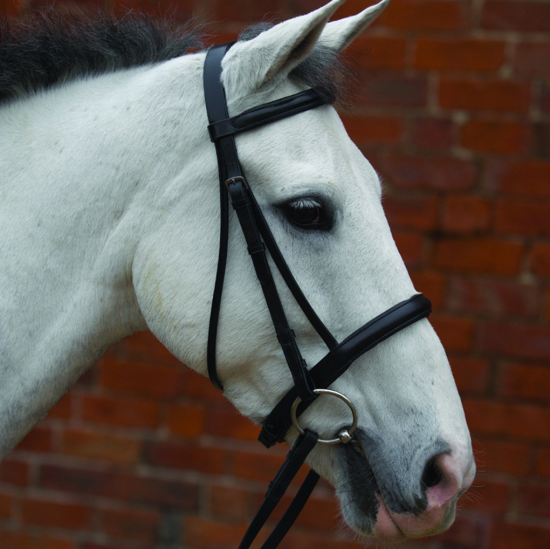 Dieses Zaumzeug mit hervorragendem Preis-Leistungs-Verhältnis ist ideal für den täglichen Gebrauch. Strapazierfähig mit gepolstertem Kappzaum-Nasenband. Komplett mit 1/2'' Gummigriffzügeln für die Größe X Small und Pony und 5/8'' für Cob Full und X Full, um der Größe des Pferdes gerecht zu werden.