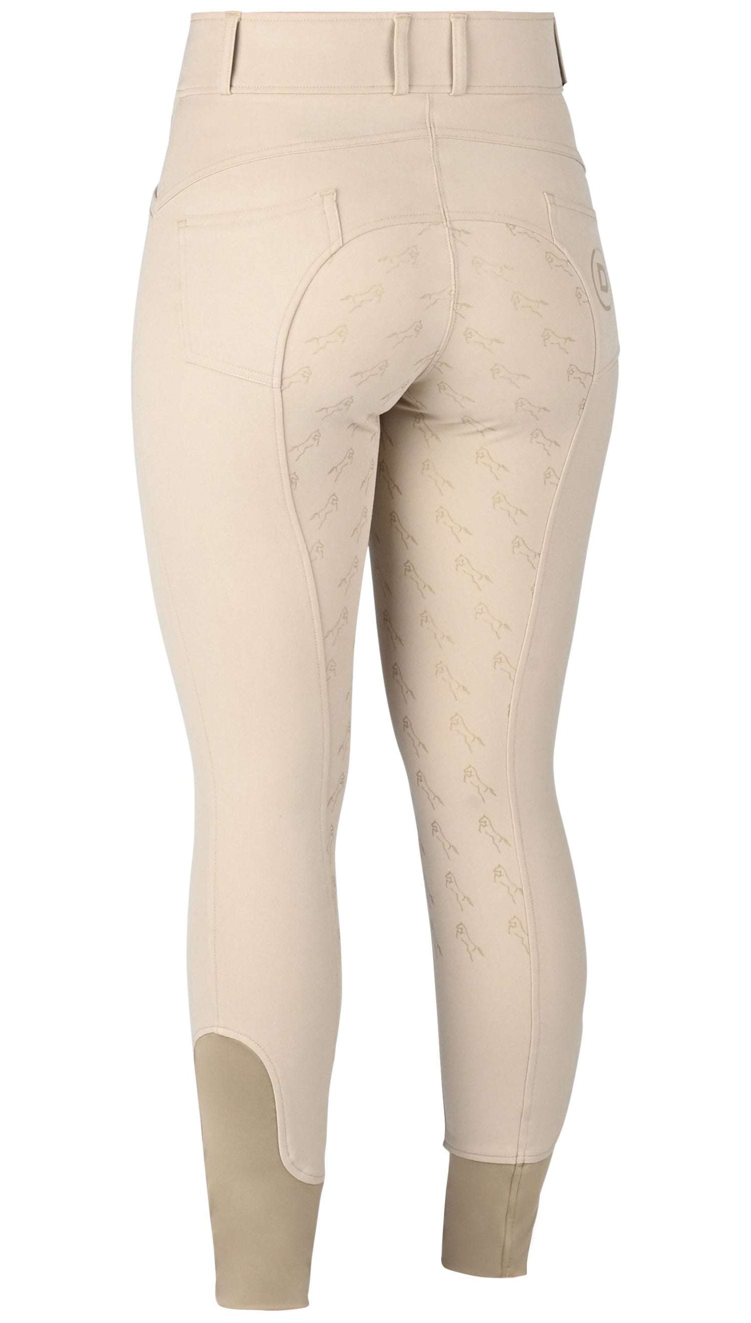 The Dublin Cammy Comfort Twill Breeches are a fitted classic style breech that offer a four way stretch twill fabric perfect for all day comfort in the saddle or working around the yard/stables, including a high stretch knit panel at lower leg to ensure a smooth and comfortable fit under your chaps/gaiters or inside your boots. The full seat is in a horse silhoutte design, that will offer extra stability in the saddle when hacking, training at home or in the competition ring. An elasticated mid-rise wide waistband, with front zip and double hook and bar closure, and belt loops combine for a flattering finish. With front and back pockets to offer style and carry your mobile phone and essentials.