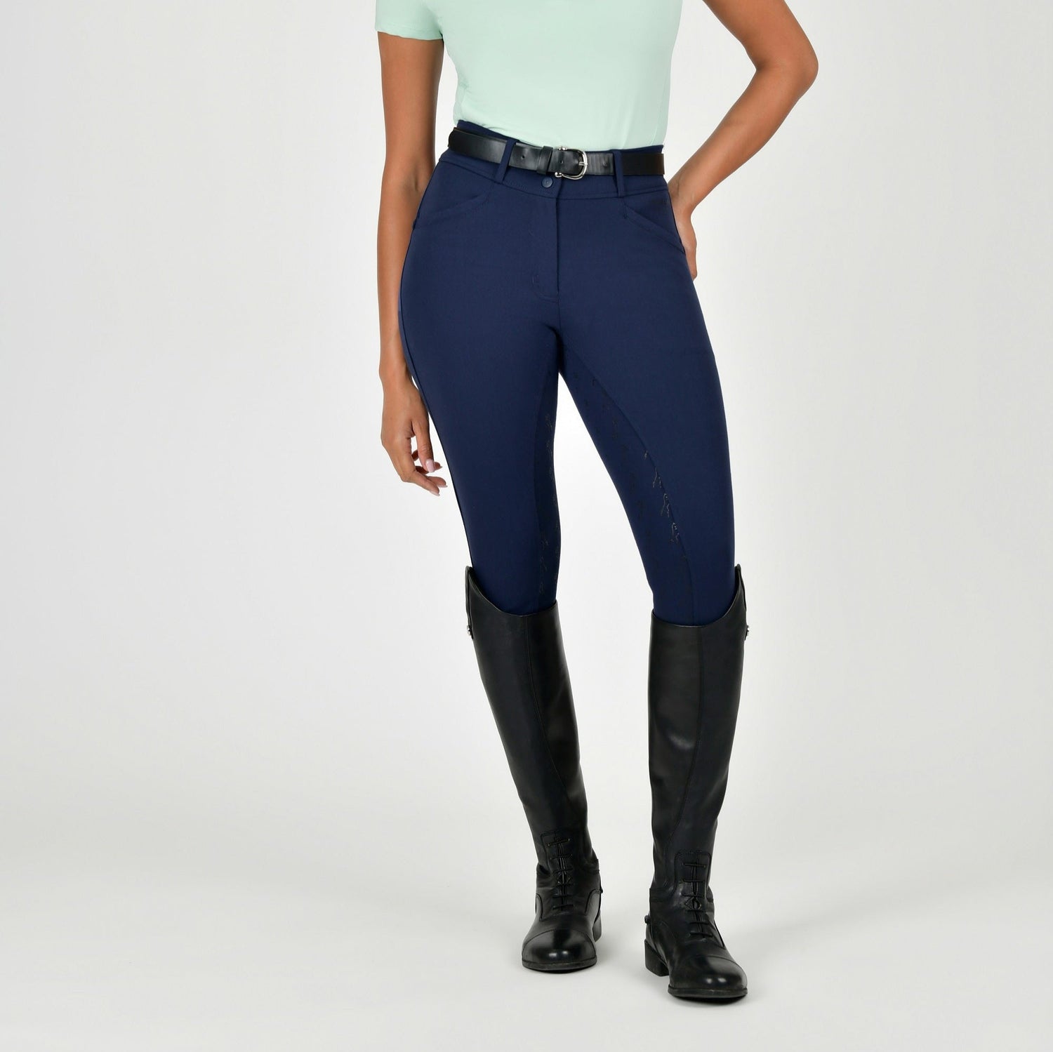 - Fitted classic style breeches in a 4-way stretch twill fabric and high stretch knit panel at lower leg, for comfort and fit.