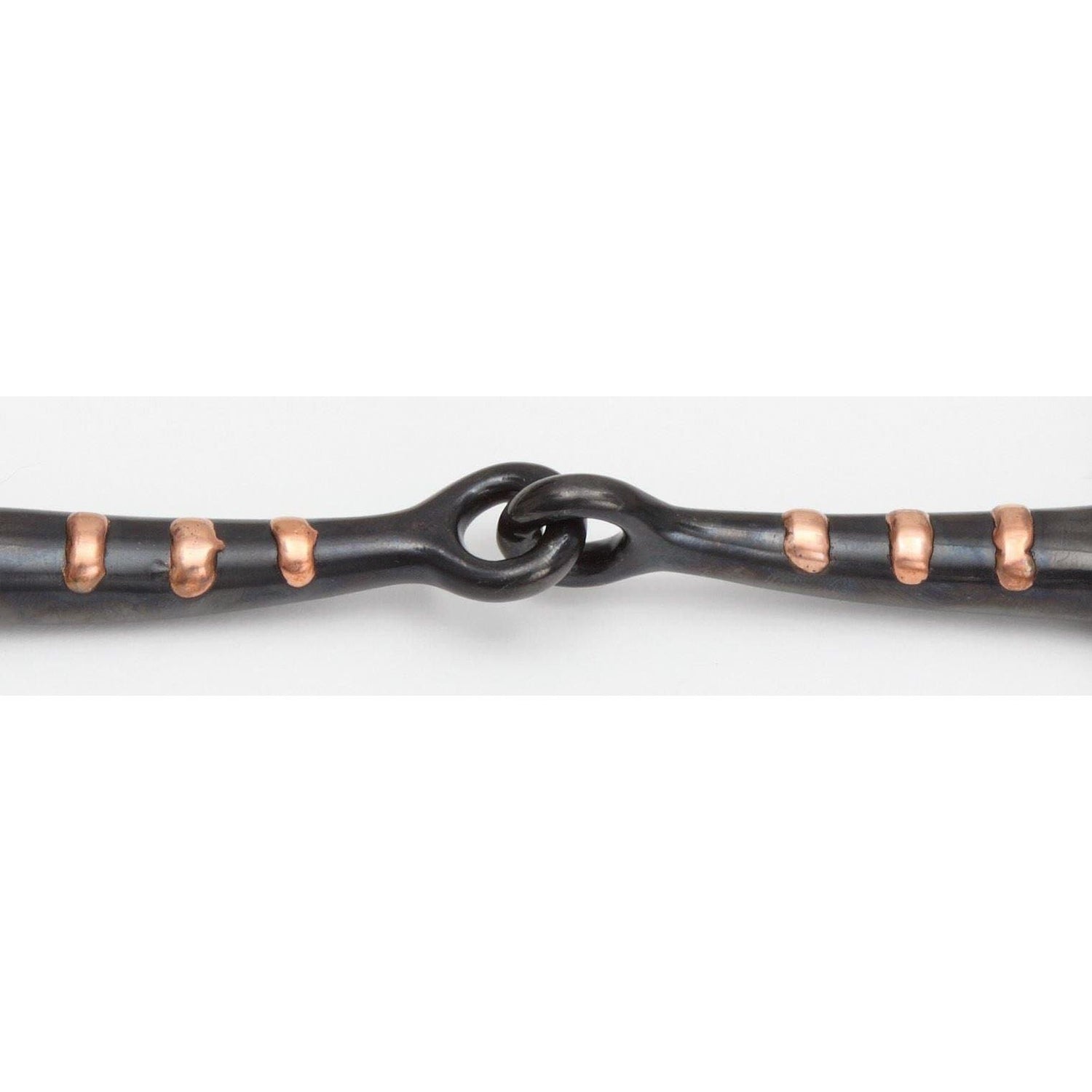 Das Sweet Iron-Mundstück dieses Gebisses erzeugt einen angenehmen Geschmack und regt das Pferd zum Erweichen und Speicheln an. Die erhöhten Kupferrippen können dazu beitragen, dass das Pferd nicht zu viel Halt braucht.