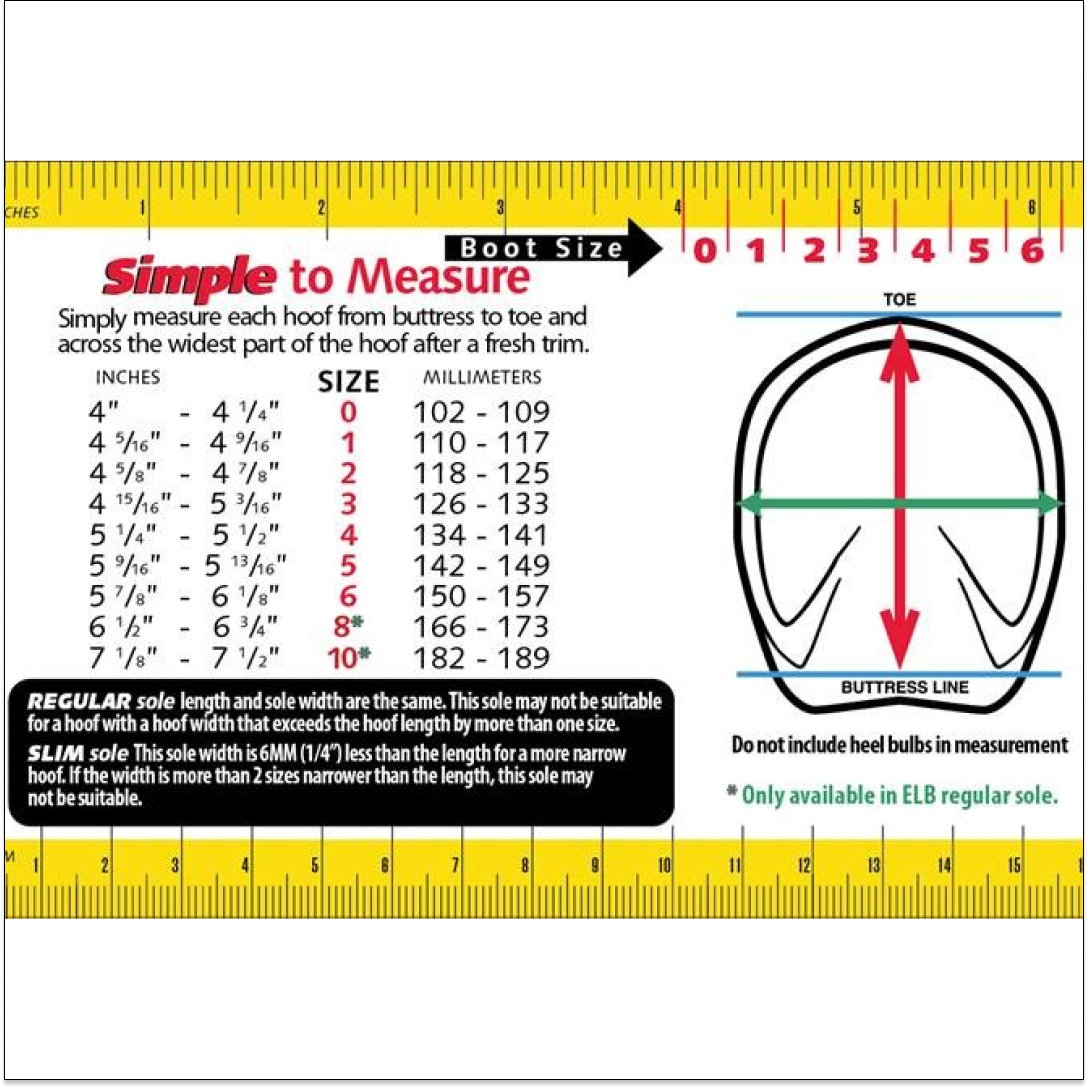 Für diejenigen, die immer noch „nervös“ sind, wenn es darum geht, „barfuß und mit Stiefeln“ zu gehen, und diejenigen, die bereits barfuß sind, aber nur in begrenzten Fällen Schutz benötigen, ist der ELB die perfekte Lösung. Auch für Rehabilitations- und Therapiezwecke ist der ELB bestens geeignet. Der ELB besteht aus 1680-Denier-Nylon in Industriequalität – dem gleichen Material, das auch für die Sport-Hufschuhe von Cavallo verwendet wird. Der austauschbare Klettverschluss verlängert die Lebensdauer des Stiefels bei Ermüdung des Klettverschlusses und lässt sich leicht schließen. Der ELB wird für beide Cavallo-Sohlen angeboten – die reguläre Sohle (Länge und Breite gleich) und die Slim-Sohle (Breite ist ¼ Zoll oder 5 mm schmaler als die Länge). Beide Sohlen verfügen über einzigartige seitliche Drainageschlitze, die Schlamm, Wasser und Sand leicht ableiten und nicht verstopfen.