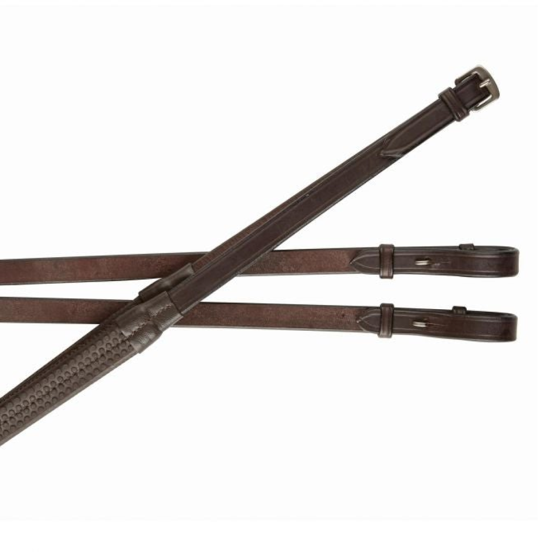 - Diese Zügel haben einen Einsatz aus feinstem europäischen Leder unter dem Gummi.