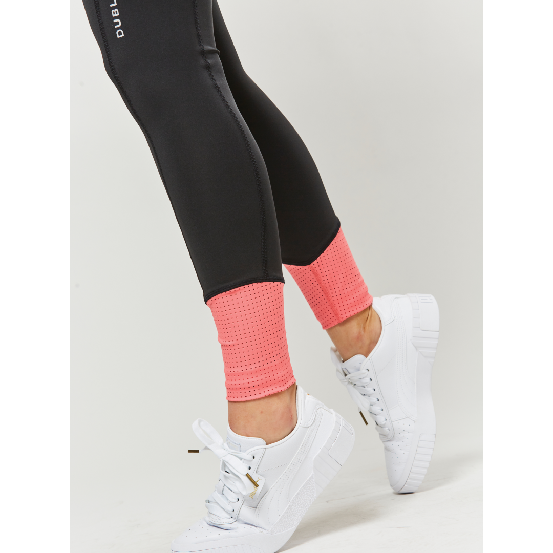 Dublin Power Performance Damen-Strumpfhose mit mittlerer Leibhöhe und Farbblock - Schwarz/Koralle / 26" ist auf Lager und wird versandt, sobald es wieder verfügbar ist