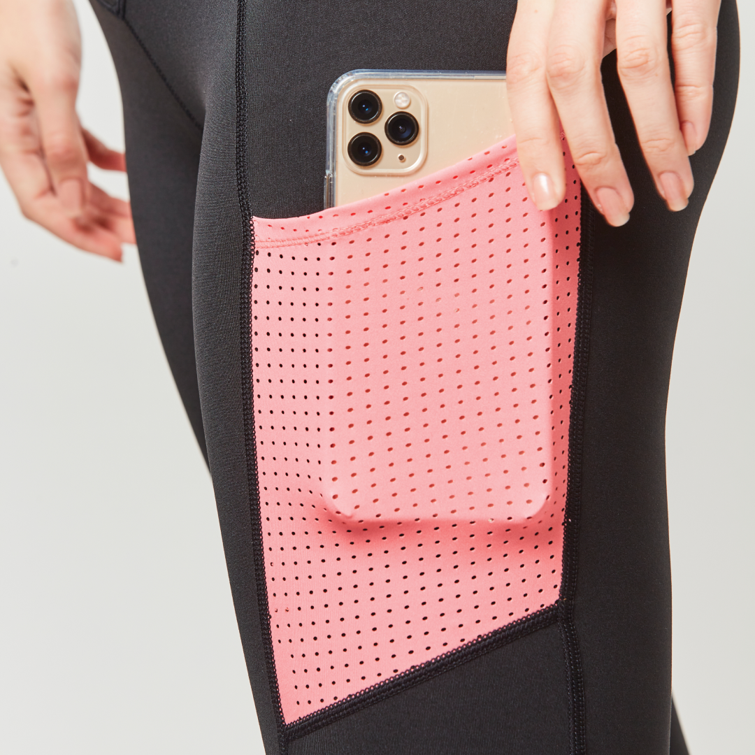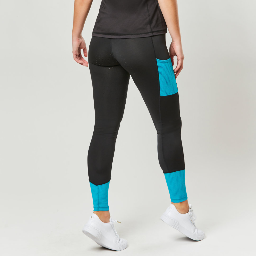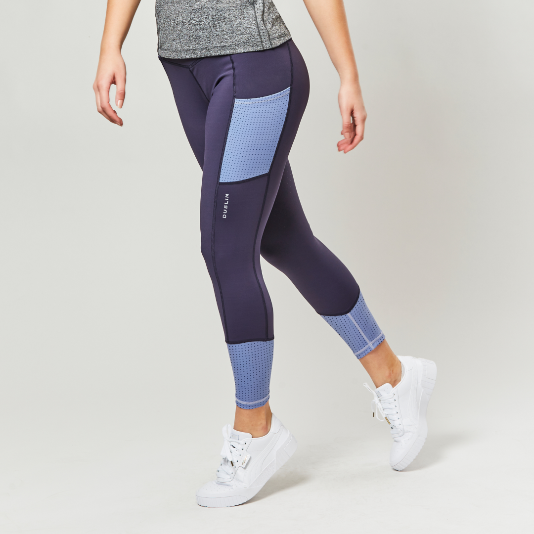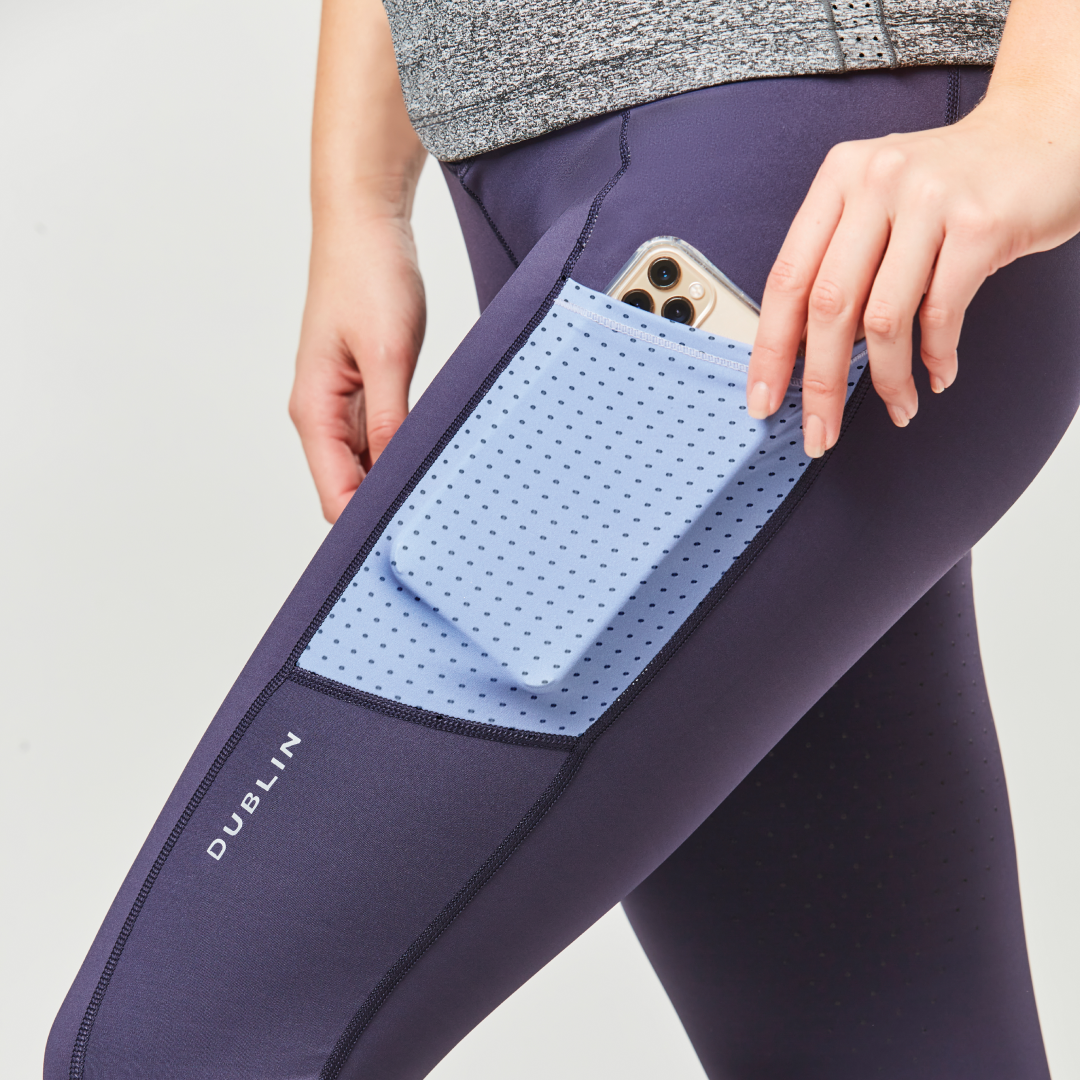 Die Dublin Power Performance Mid Rise Color Block Damenstrumpfhose ist athletisch gestaltet mit Stretch-Polyestergewebe und technischen Merkmalen, zu denen die Comfort Dry-Technologie gehört. Die modernen Farbblockeinsätze sorgen für einen sportlichen Look, mit praktischen seitlichen Handytaschen und Bündchen aus Laser-Mesh, einem perforierten Stoff. Ausgestattet mit Reißverschlusstaschen auf der Rückseite zum Verstauen Ihrer wichtigsten Utensilien und einem nahtlosen Ezi-Grip-Gel-Vollgriffsitz mit Silikondruck für Stabilität.