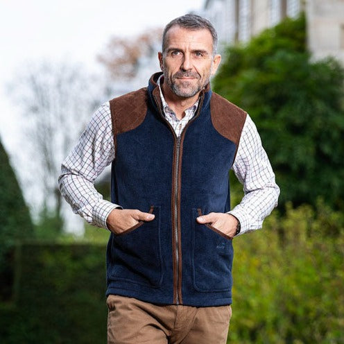 Der Baleno Newington Herren-Fleece-Bodywarmer ist mit Schulterpolstern aus Wildlederimitat und offenen Taschen für einen klassischen ländlichen Stil ausgestattet und verfügt über eine Innentasche mit Reißverschluss, die als zusätzliches Futter in den Kollektionen Oakwood und Livingstone dient.