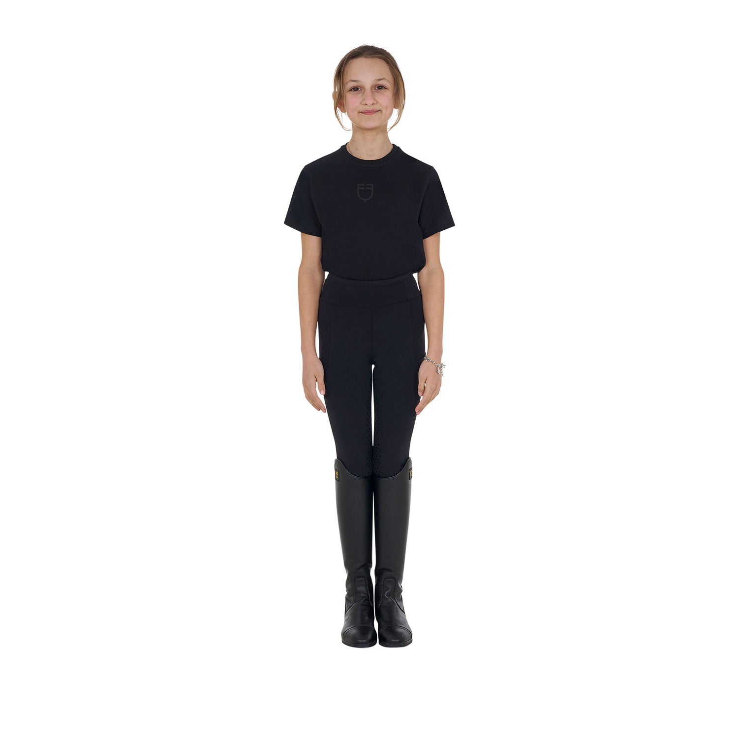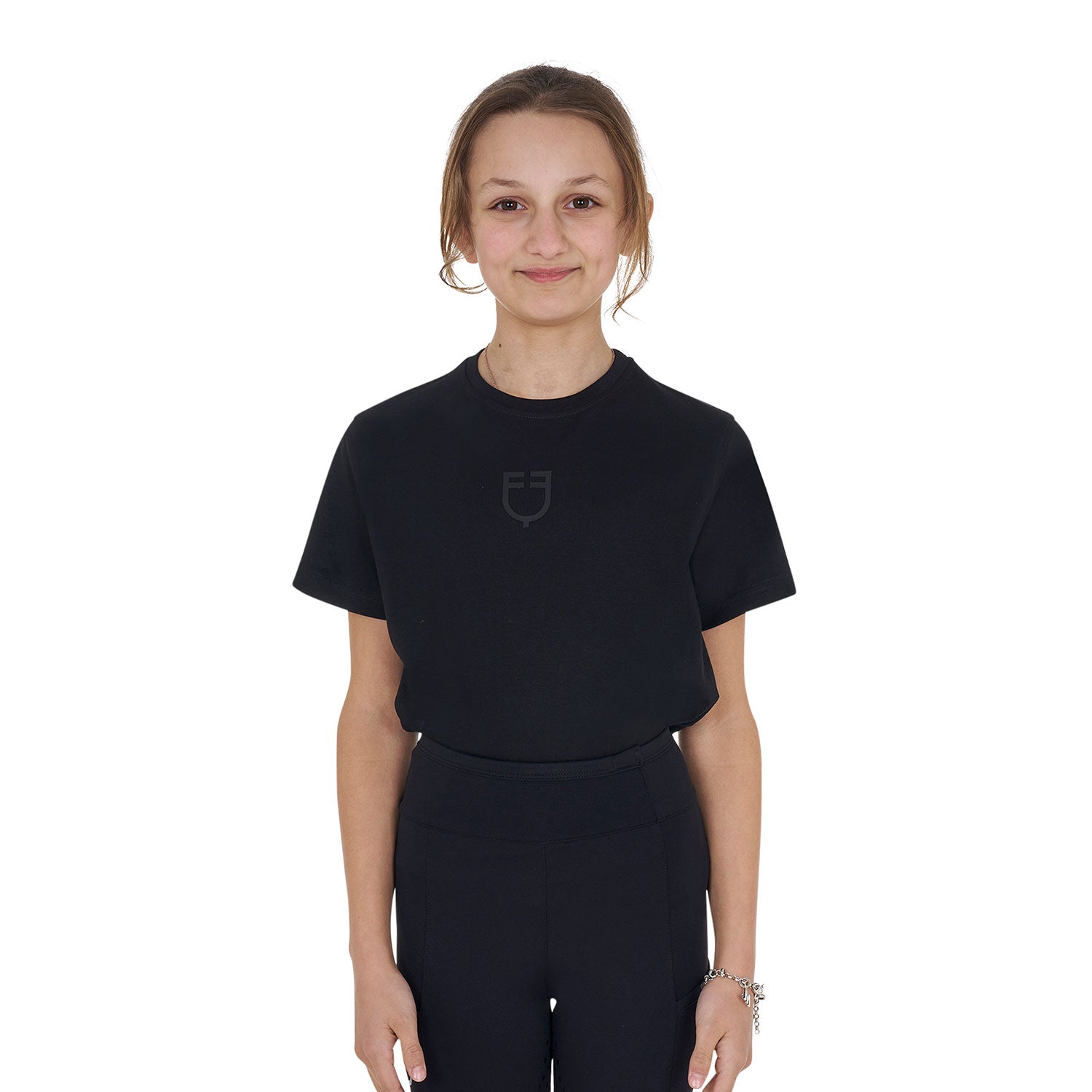 Equestro Girls' Basic Cotton T-Shirt With Tone On Tone Logo - Black / 10 Years ist auf Lager und wird versandt, sobald es wieder verfügbar ist