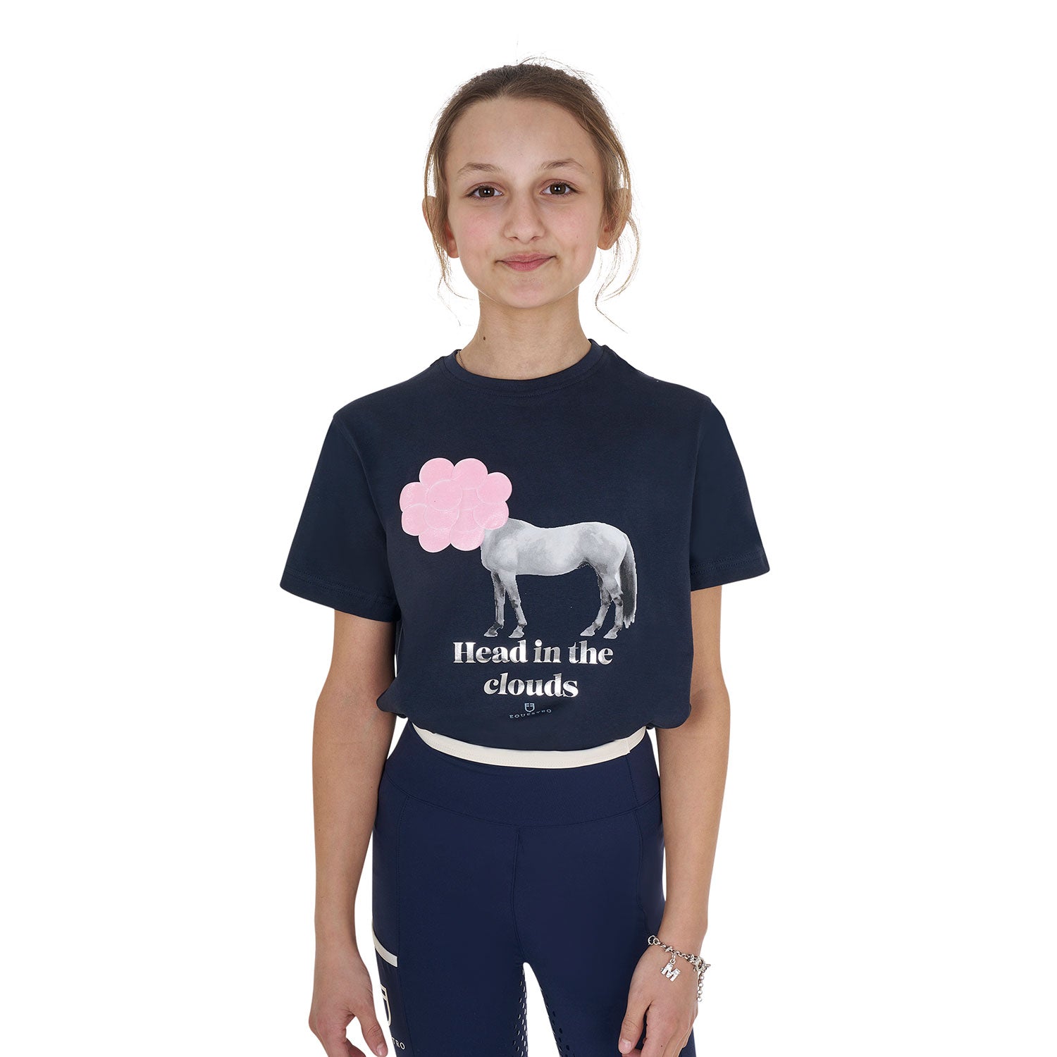 Its classic silhouette and clean lines are enhanced by distinctive details, including the Equestro logo and lettering, a black and white horse print on the chest and Head in the clouds lettering that add a touch of elegance and style.