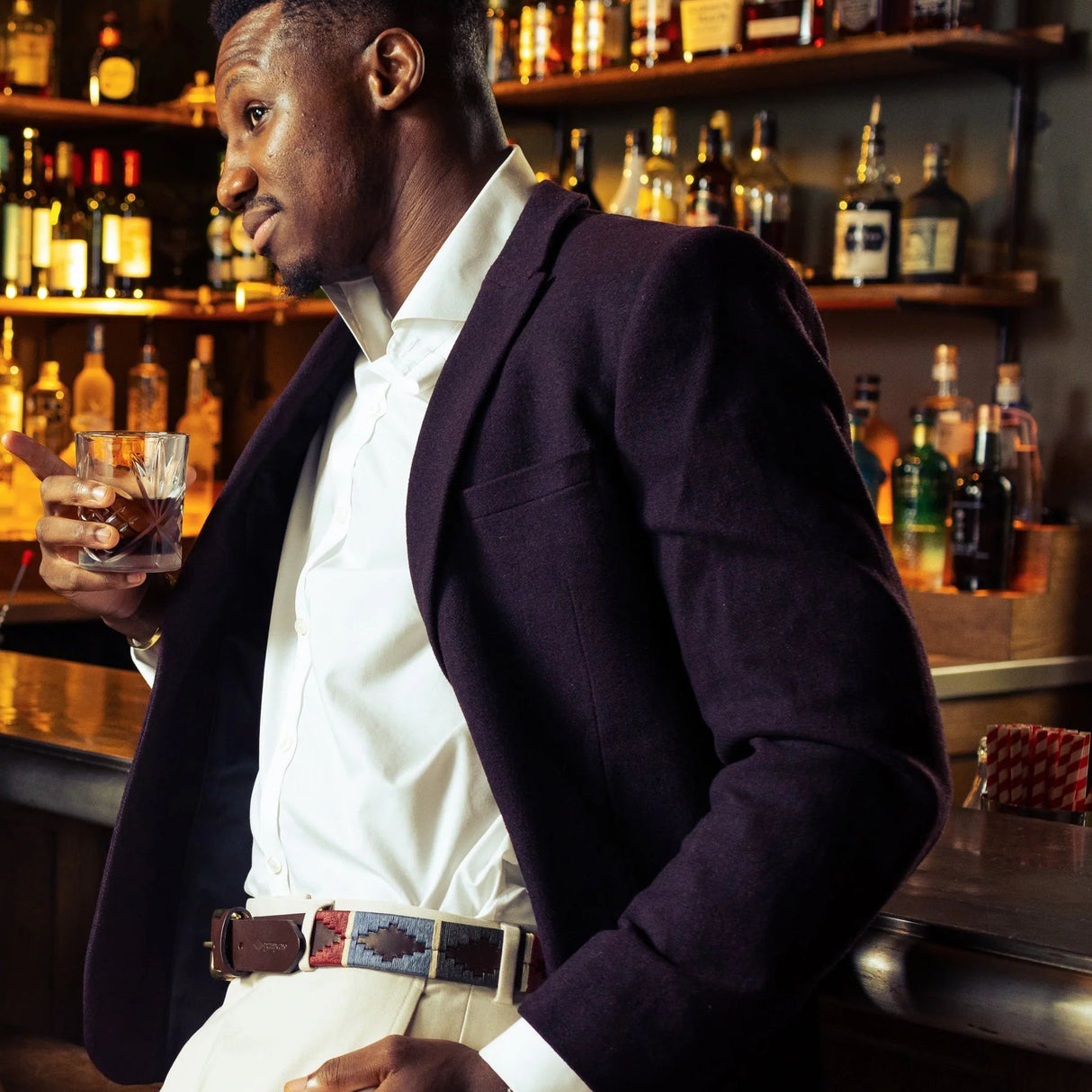 Introducing the Otoño belt, a tribute to the rich hues of autumn. Crafted by skilled artisans in the La Pampa region of Argentina, this belt features a sophisticated blend of burgundy, dark green, and blue threads, woven into premium top-grain Argentine cow leather.