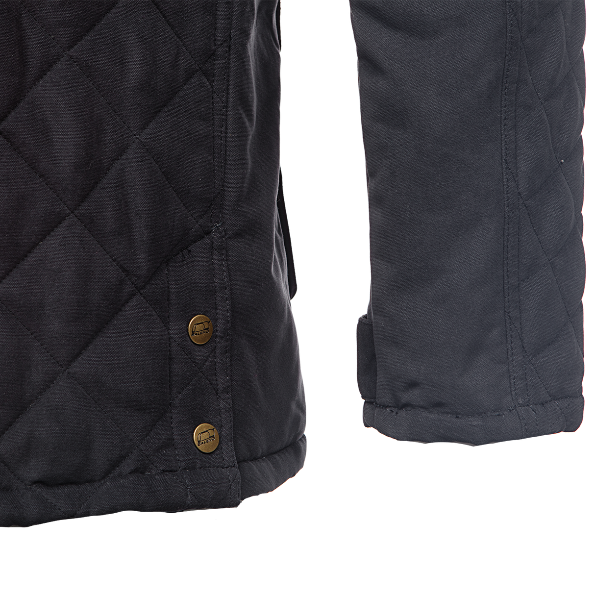 - 2-Wege-Reißverschluss unter der Klappe mit Druckknöpfen