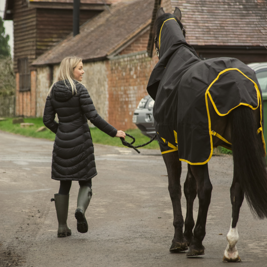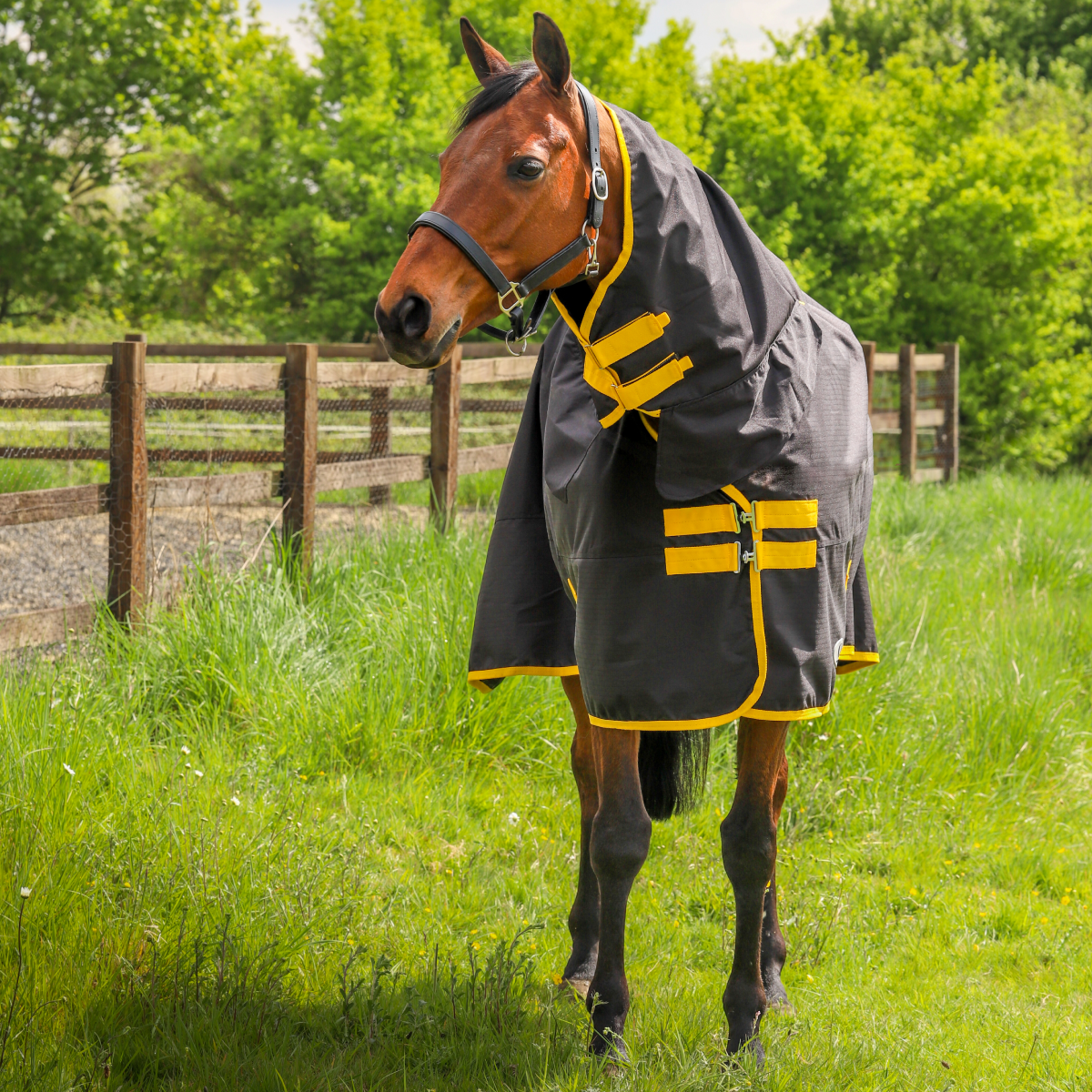 Diese 100 % wasserdichte Decke mit 0 g Füllung ist ideal geeignet, um Ihr Pferd kühl und trocken zu halten.