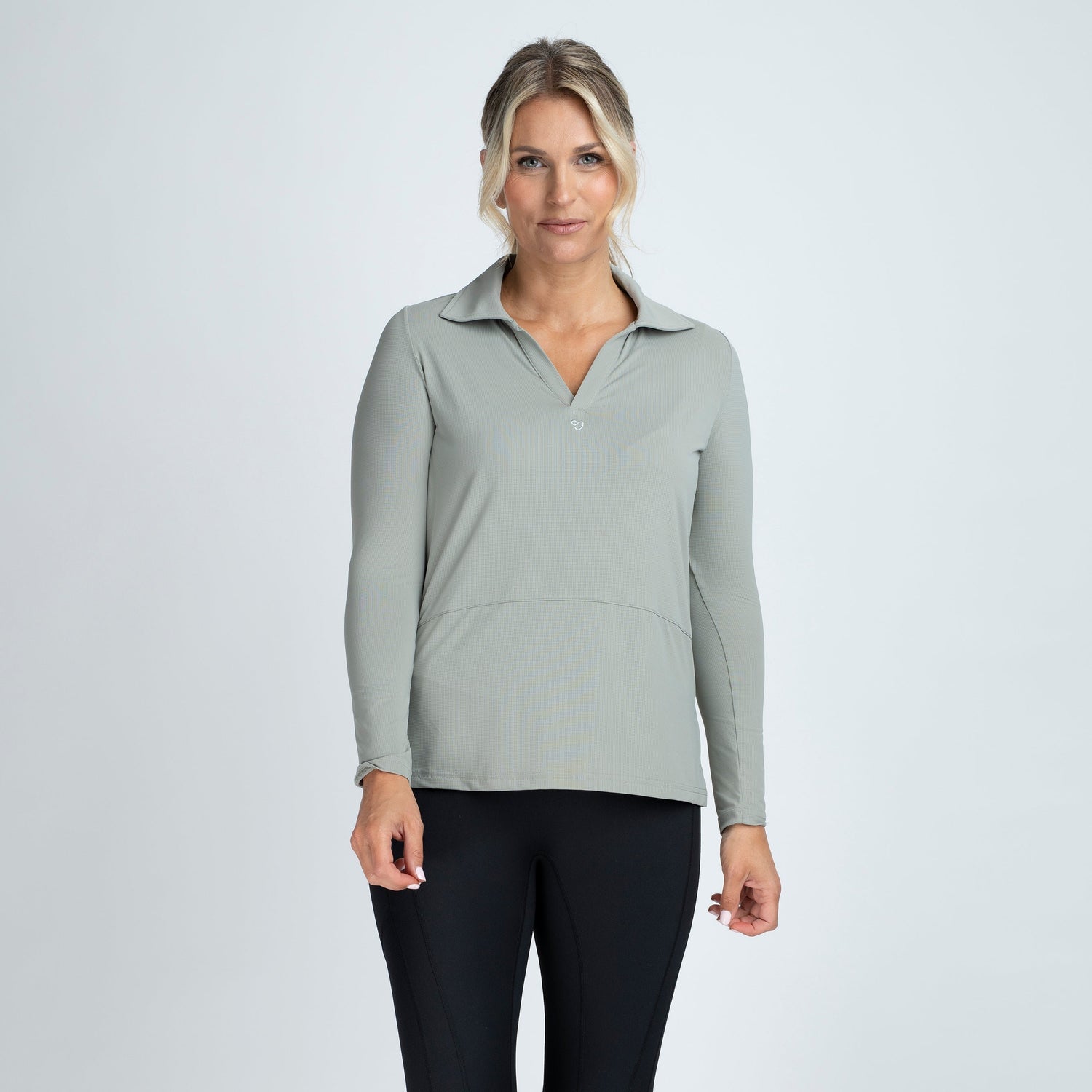 A sporty V Neck Long Sleeved Top which is lightweight and perfect for all seasons, layering under a sweatshirt, wearing to the gym or you can dress it up for coffee or the office!