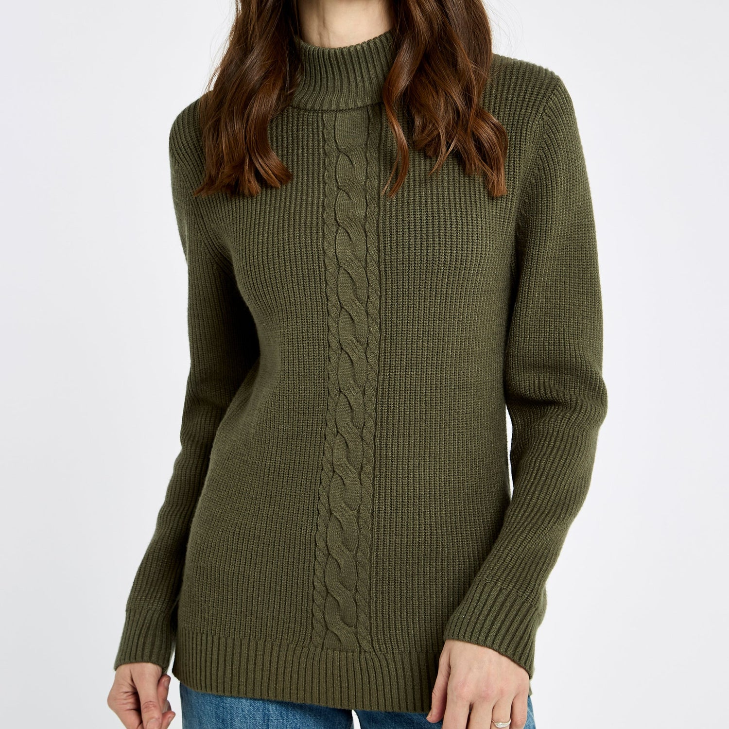 - Flattering placed cable stitch on front