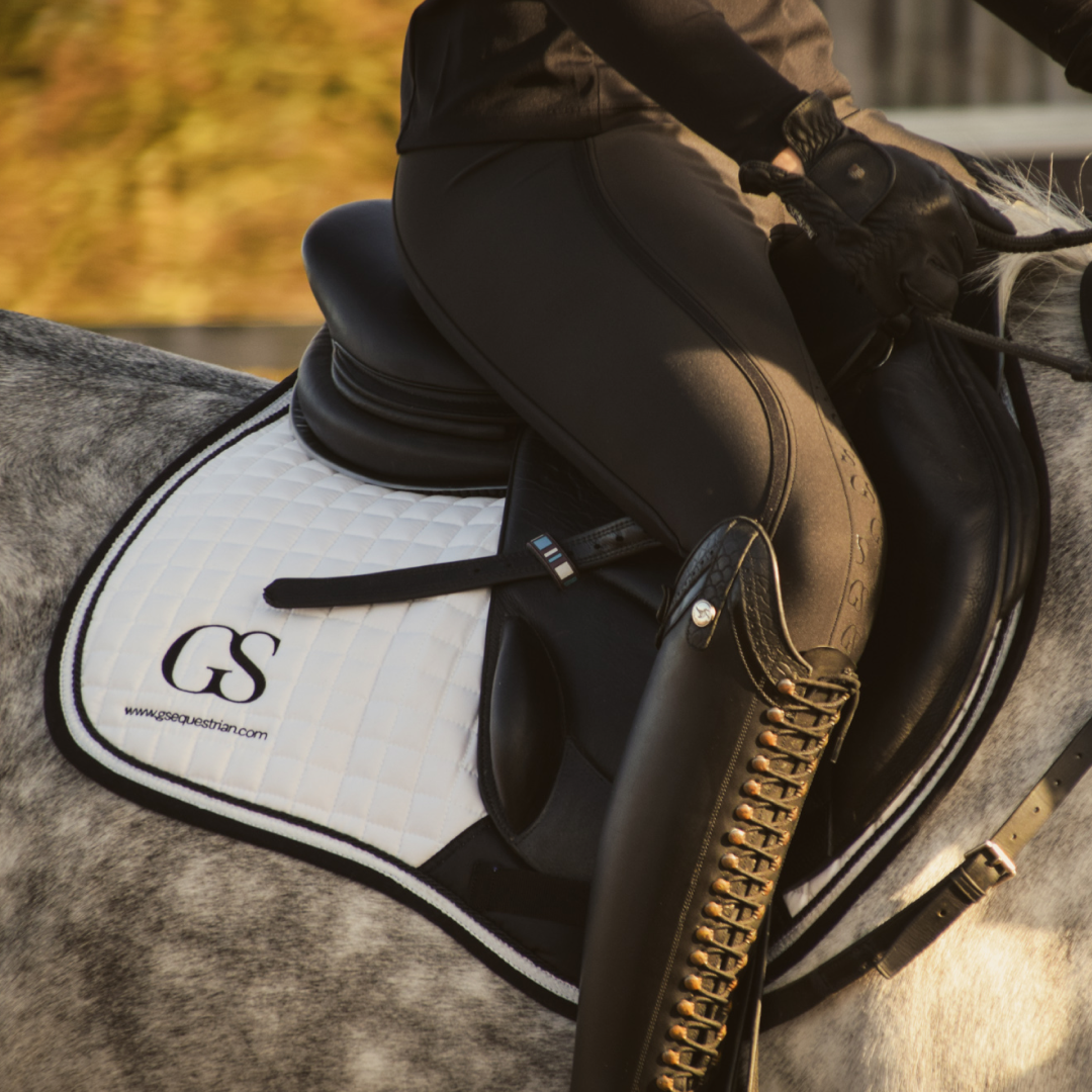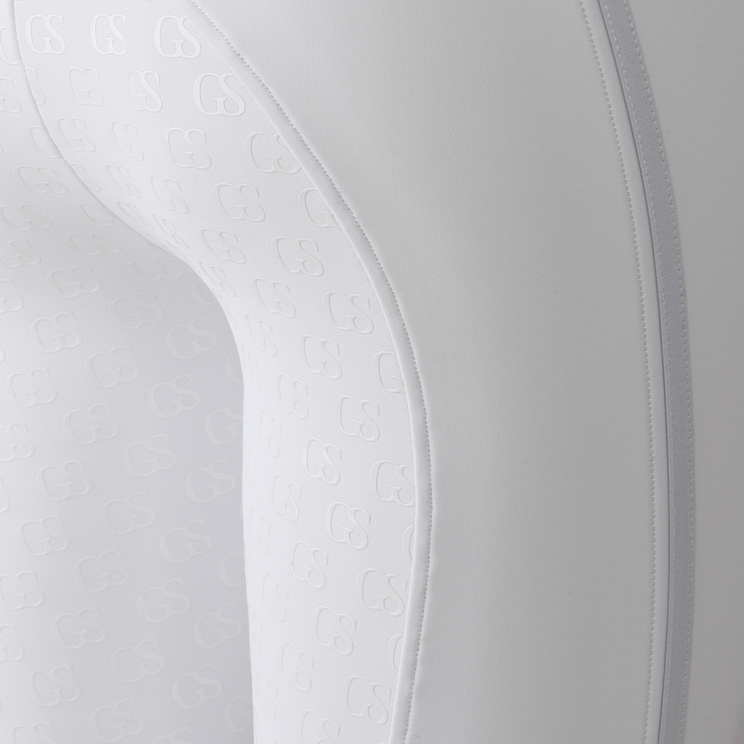 Der Silikongriff mit „GS“-Muster ist neu in der GS Equestrian-Reihe und bietet ein stilvolles Aussehen und ist gleichzeitig effektiv. Da es sich um eine Vollbesatz-Reithose handelt, hat das Silikon die gleiche Farbe wie die Reithose und fügt sich so in das stilvolle Design ein, da es einen großen Teil der Reithose bedeckt. Darüber hinaus befindet sich auf dem linken Bein, auf der Handytasche, ein GS-Logo, das einen reflektierenden Hinweis aufweist.
