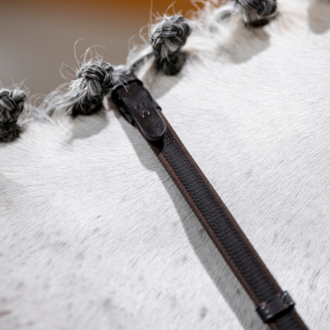The Horseware® Rubber Grip Continental Reins are a lightweight and flexible anti-slip web rein. Rubber woven into the webbing and leather stoppers help you keep even, secure contact on the reins. Features tonal stitching, billet ends, and stainless steel hardware.