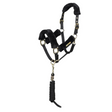 Für mehr Komfort auf beiden Seiten des Kopfes und an der Nase mit einem Clip-Halsband verstellbar. Das Halfter und das Seil sind mit goldglänzenden Beschlägen versehen. Eine ARMA-Platte für einen unverwechselbaren Look.