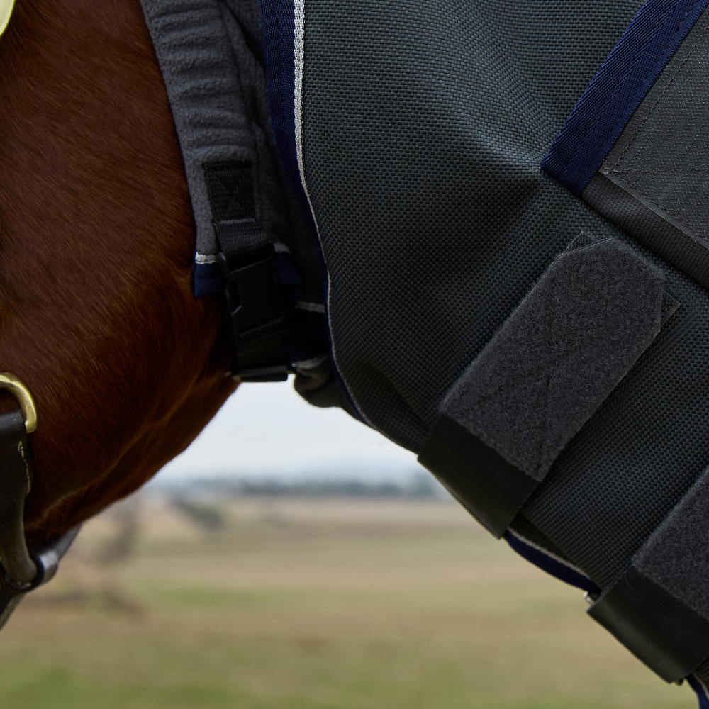 More than just a turnout rug, it provides superior comfort with memory foam, wither relief pads and a smooth, friction-reducing lining that enhances coat shine. The detachable neck cover, quick-clip closures and adjustable leg straps allow for a customised fit, ensuring freedom of movement and reliable protection whatever the weather. Whether grazing in the field or resting in the stable, your horse will stay warm, dry and comfortable, even in harsh conditions.