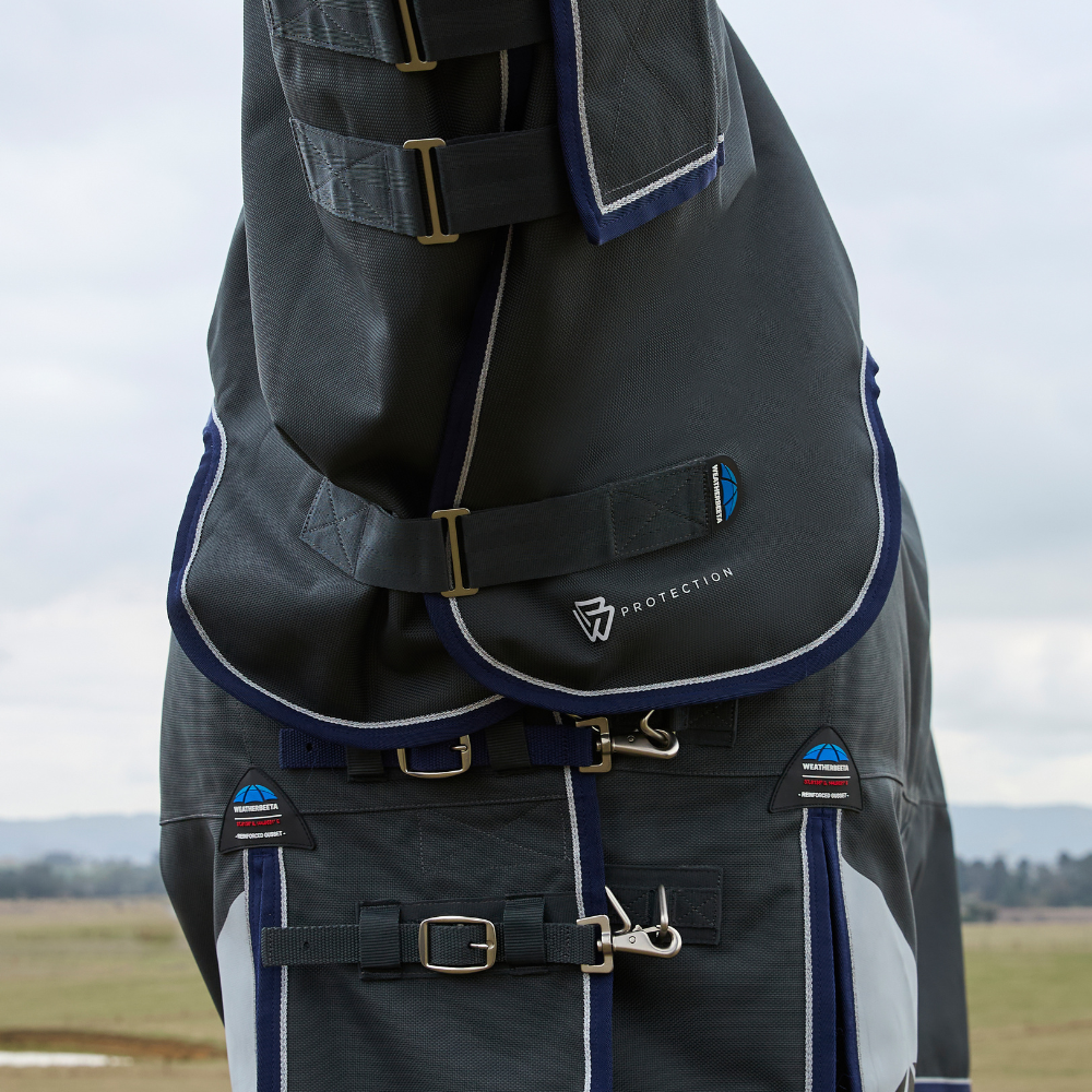 Give your horse the ultimate combination of protection, comfort and style with the WeatherBeeta ComFiTec Ultra Turnout Detach-A-Neck 220g. Designed for all-weather conditions, this rug offers exceptional durability and an outstanding fit thanks to its 1800 denier outer shell and advanced waterproof Teflon EcoElite™ coating.