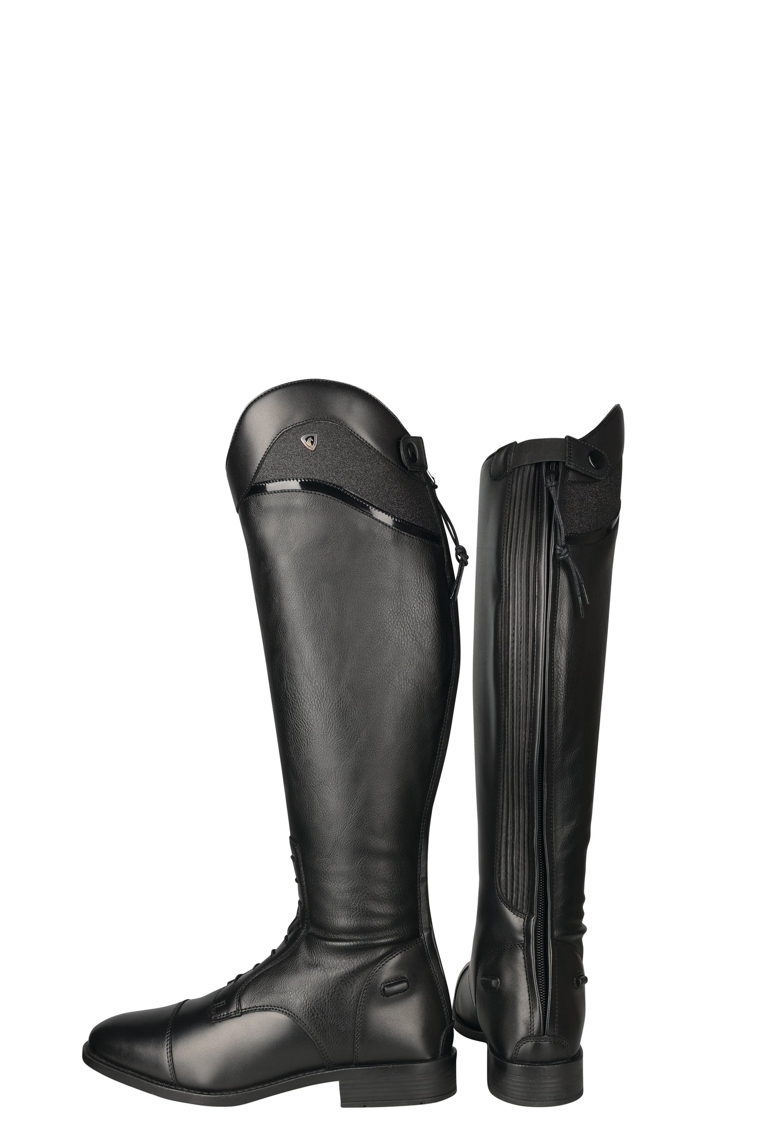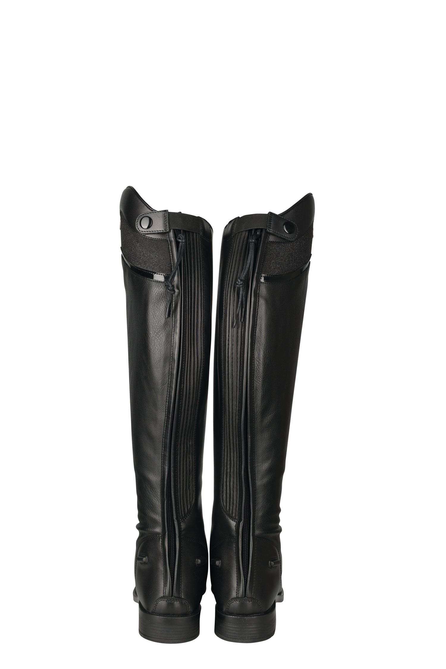 Smart and sophisticated - the Atrani Riding Boot is a traditional field boot with the addition of a shaped shimmer panel and patent strip. The leather inner and foot create a durable and flattering look, with synthetic outer to allow a comfortable contour to the leg. Featuring elasticated back panel for superior comfort, ease of fastening and close contact feel and sturdy zip fastening with secure top press stud closure. This streamlined boot has been innovatively designed to be comfortable, stylish and supportive.