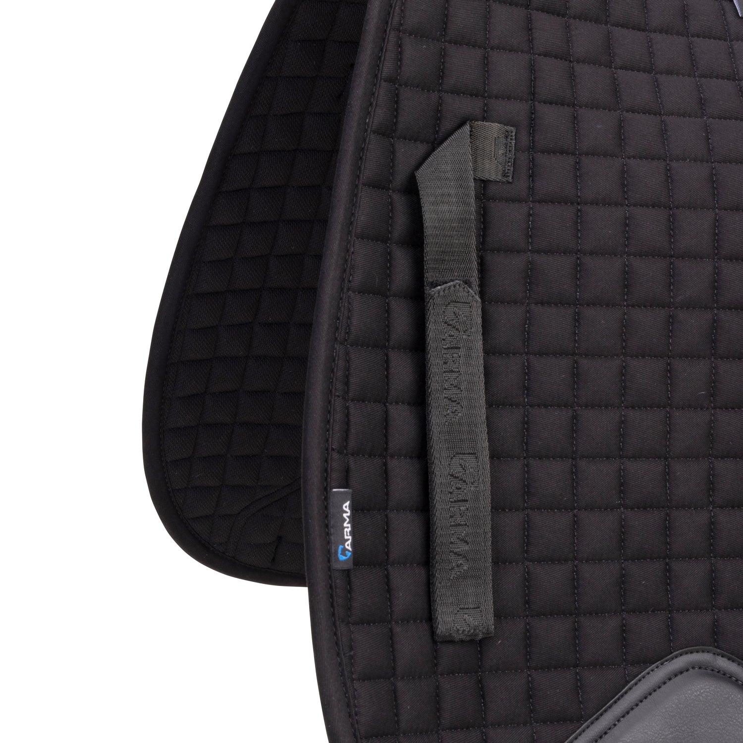 The ARMA deluxe cotton numnah offers understated luxury with enhanced under-saddle comfort. The timeless small square quilt feels chic, cotton looks smart, and wears well. The contoured shape gives good clearance under the saddle gullet.