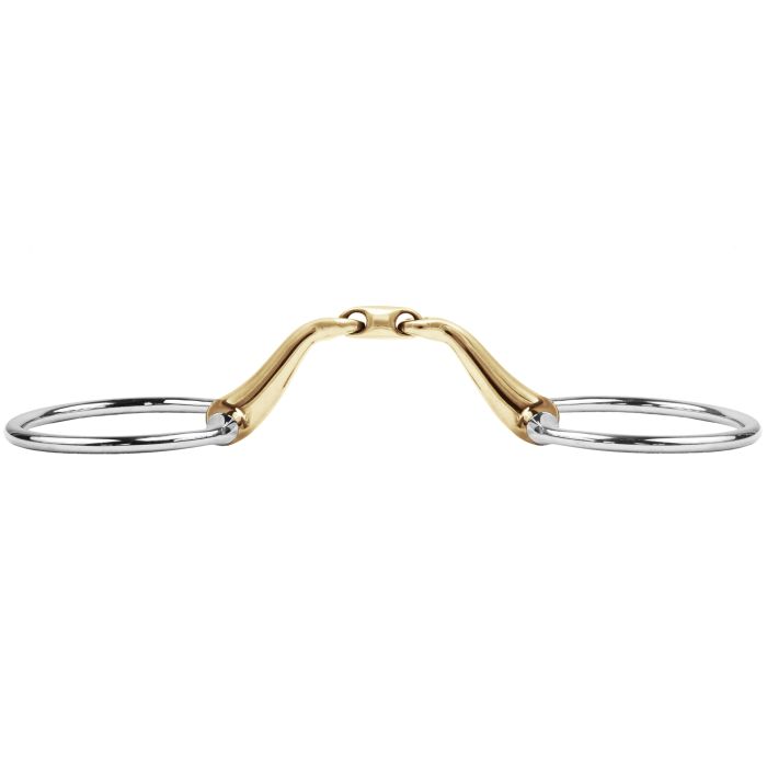 The Eggbutt snaffle is characterized by a fixed ring. The sides should lie about one centimeter closer to the corners of the mouth compared to a loose ring snaffle. The Eggbutt prevents the corners of the mouth from being pinched by the rings. The horse cannot lift the bit with its tongue, so the mouthpiece stays calmer in the mouth and is somewhat more stabilized laterally. Since the ring does not rotate, there is a minimally more direct action with a slight effect on the poll. However, the difference from a loose ring snaffle is hardly noticeable for the horse or most riders. The double-jointed Level 3 mouthpiece distributes pressure more directly over the tongue and bars. The Eggbutt provides slight lateral stabilization and guidance, creating calmness and stability in the horse’s mouth. The sweet-tasting SWEET Copper is particularly well accepted by horses and promotes chewing.