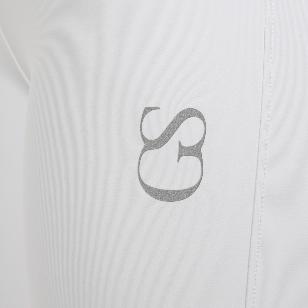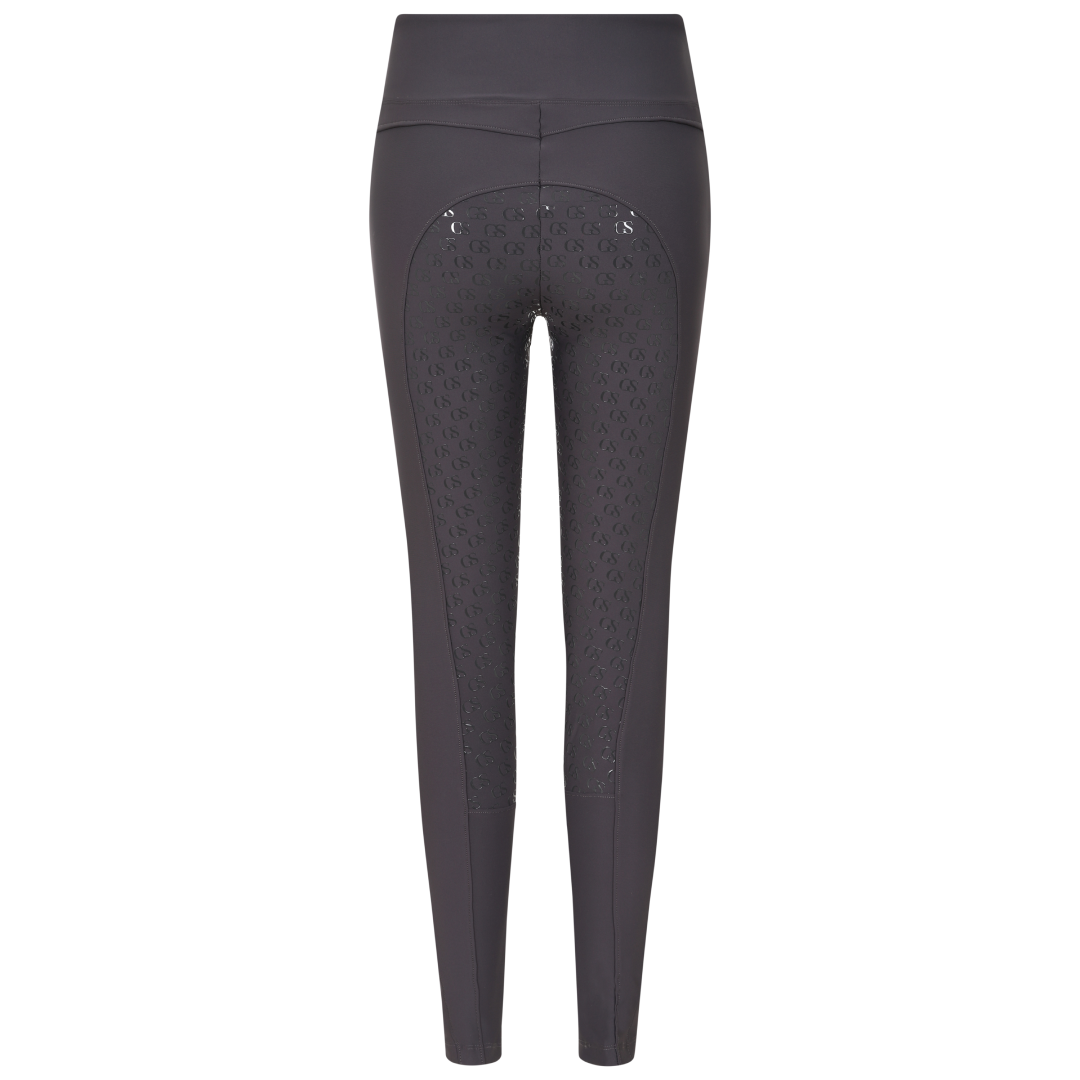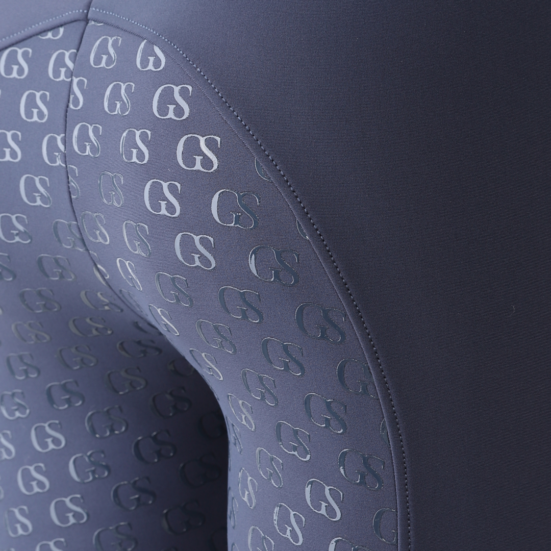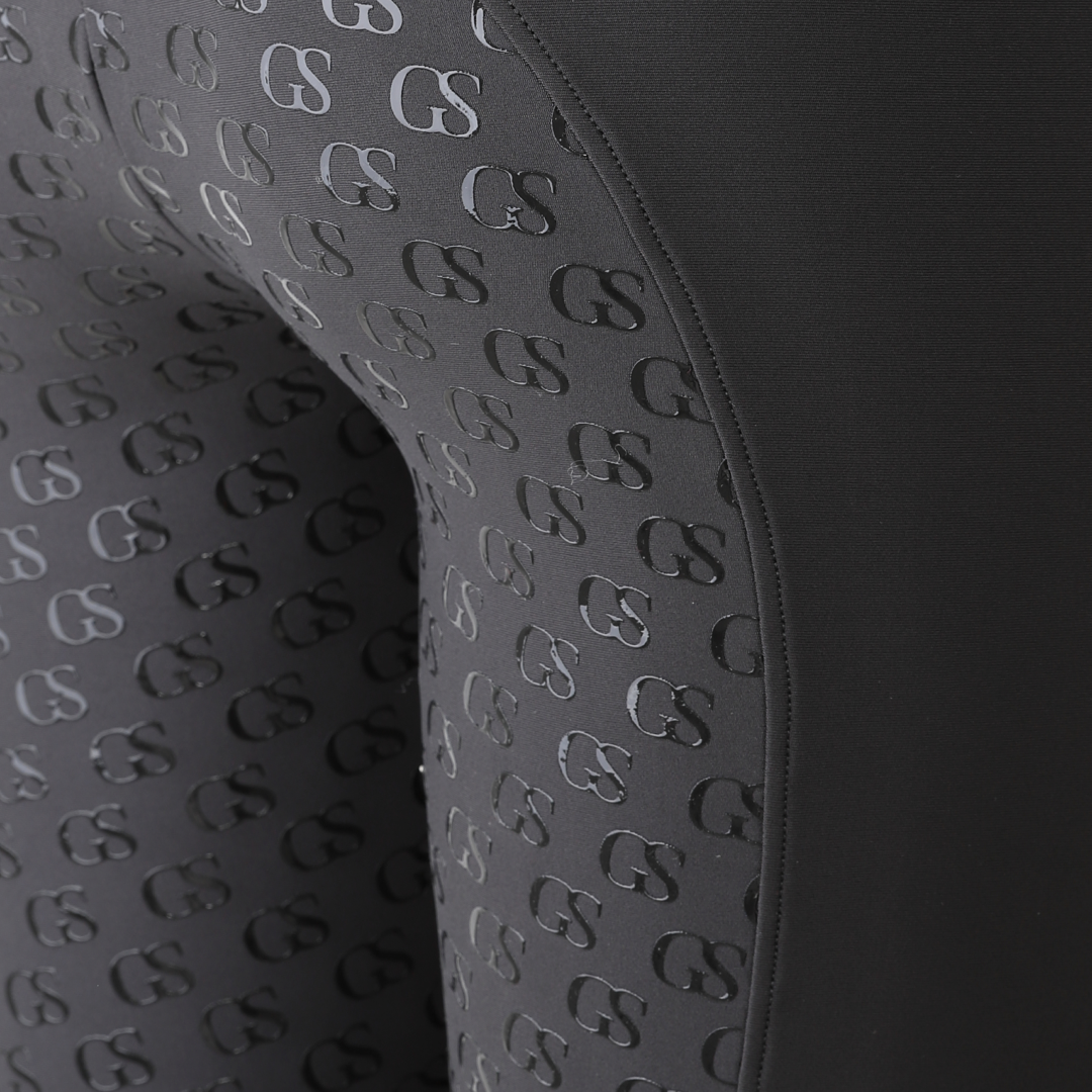 La poignée en silicone à motif « GS » est nouvelle dans la gamme GS Equestrian et offre un look élégant, tout en étant efficace. Étant un collant d'équitation à fond intégral, le silicone est coloré de la même couleur que le collant d'équitation, ce qui se fond dans le design élégant, car il recouvre une grande partie du collant d'équitation. De plus, il y a un logo GS sur la jambe gauche, qui a une touche réfléchissante.