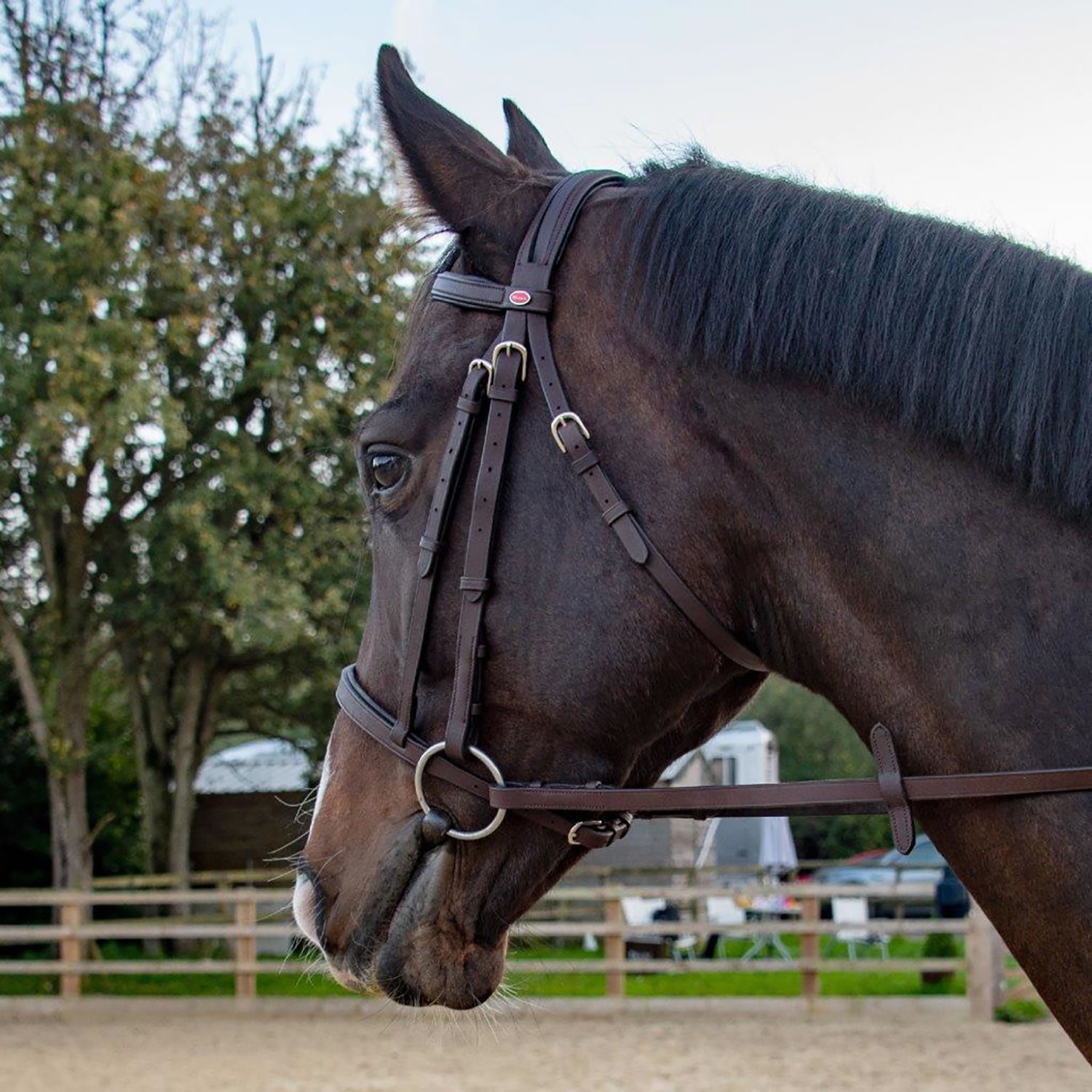 Le bridon Whitaker Ready To Ride est fabriqué à partir de cuir innovant pré-huilé qui nécessite très peu d'entretien. Comprend un frontal et une muserolle surélevés résistants à l'eau avec des coutures ton sur ton et un badge de marque rouge sur le frontal. La bride est résistante aux fissures et comprend des joues en billette. Le casque a un canal découpé pour éviter les irritations sur la zone sensible du sondage. Quincaillerie en acier inoxydable. Rênes vendues séparément.
