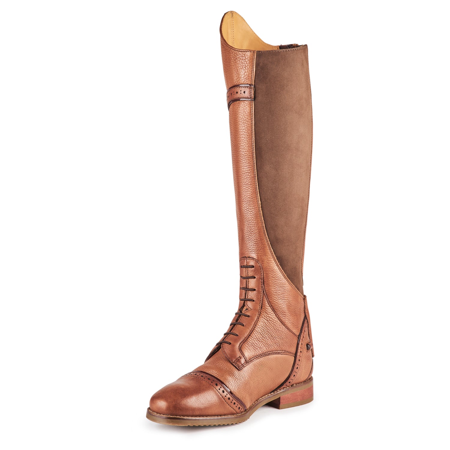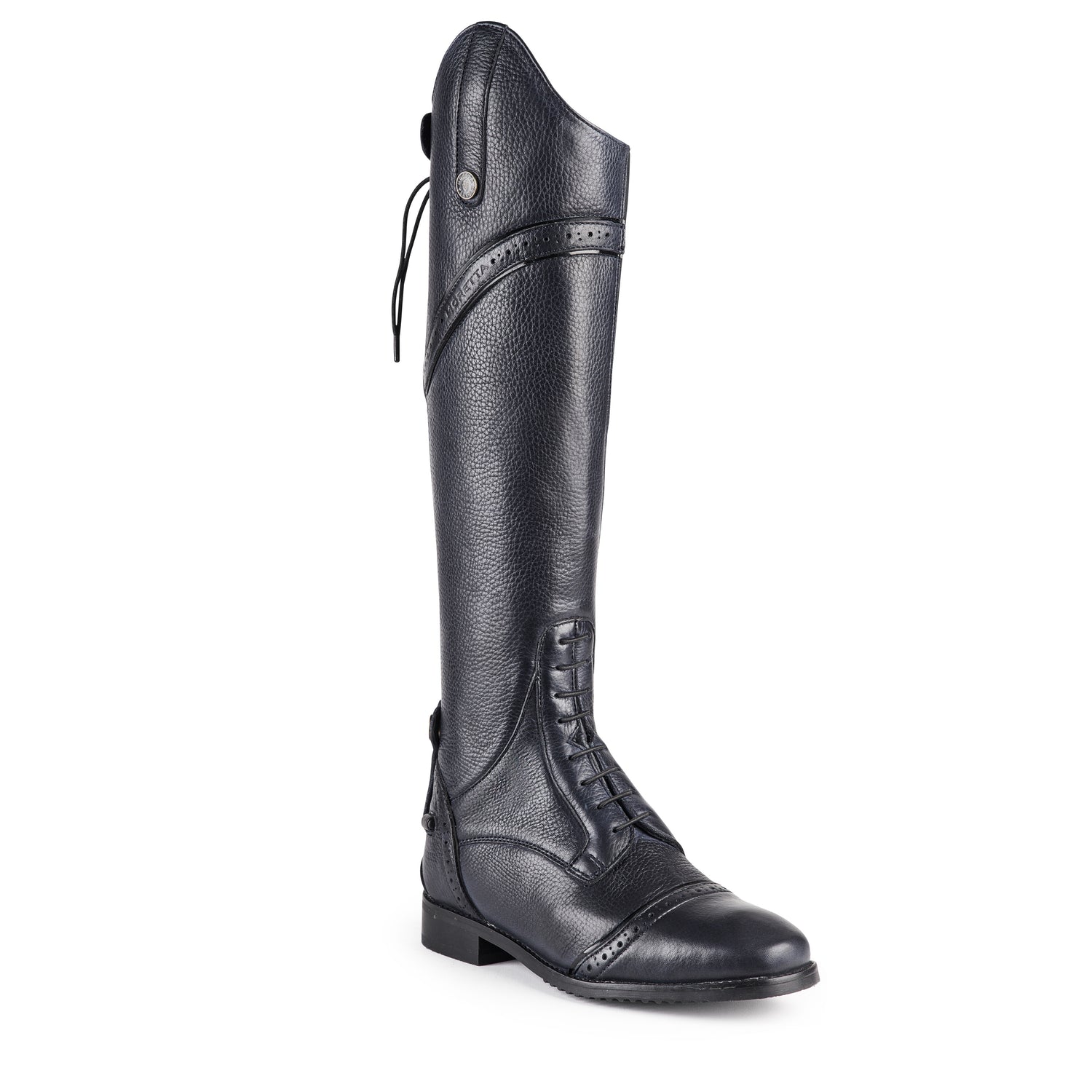 Les bottes d'équitation Shires Moretta Constantina sont des bottes d'équitation longues de qualité supérieure avec un ajustement haut de gamme et des faux lacets. Les bottes d'équitation Moretta Constantina sont confectionnées en cuir pleine fleur doux au toucher. Doublures entièrement en cuir. Détail en fausse dentelle avec panneaux extensibles pour un ajustement sur mesure. Fermetures éclair YKK à l'arrière. Repose-éperons à poignée en cuir. Semelles ActiveFlex avec système de support d'impact. Semelles d'équitation Moretta en composite pour une adhérence optimale. Tiges en acier.