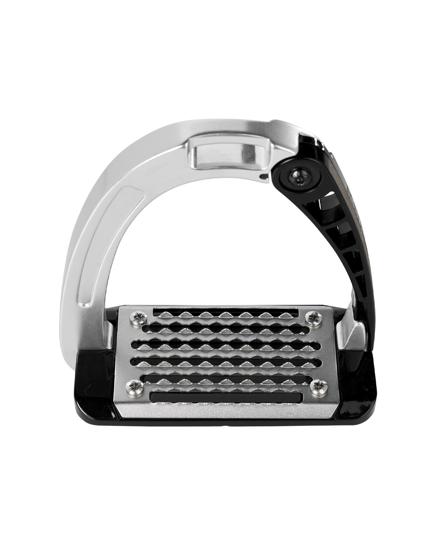 The patented side opening was created using an innovative injection molding technique. The outward opening of the stirrup arm aids in the release of the foot in case of emergency.