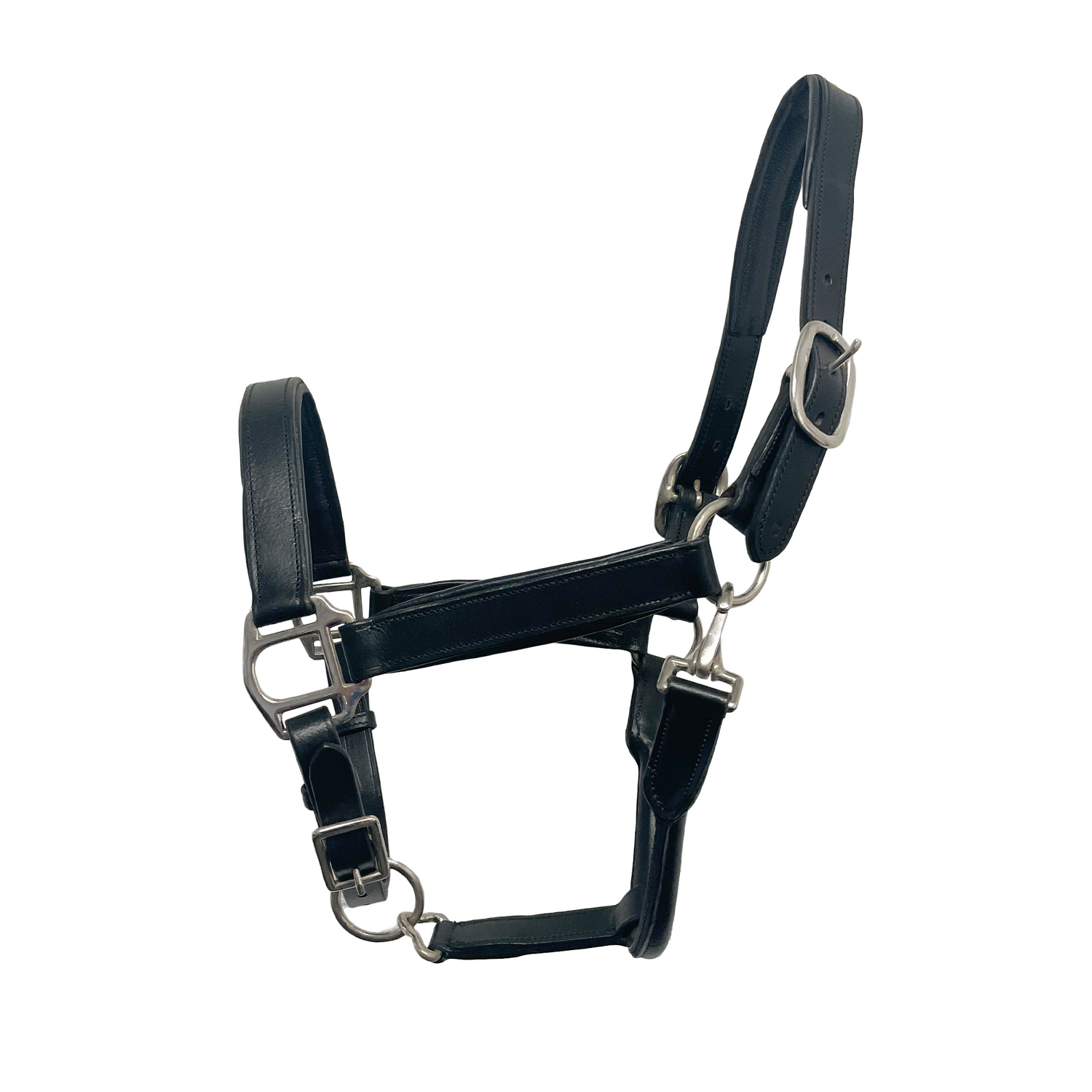 Ce licol rembourré en cuir GS Equestrian est doté d'un rembourrage sur la têtière de 3 cm de large et la muserolle de 3 cm de large ainsi que sur les montants de 3 cm pour un confort supplémentaire. Il est doté de grandes fixations métalliques, y compris des boucles de chaque côté, pour rendre le licol entièrement réglable en fonction de chaque cheval et le rendre plus facile à fermer et à défaire.