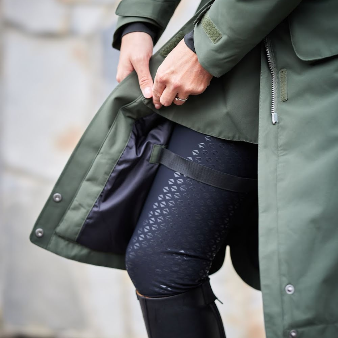 - EquTex™, tissu stretch 2 couches en polyester recyclé avec membrane imperméable et respirante. Imperméabilité 20 000 mm / Respirabilité 20 000 g/mm2/24h. Le tissu extérieur est doté d'un traitement DWR écologique sans fluorocarbone.