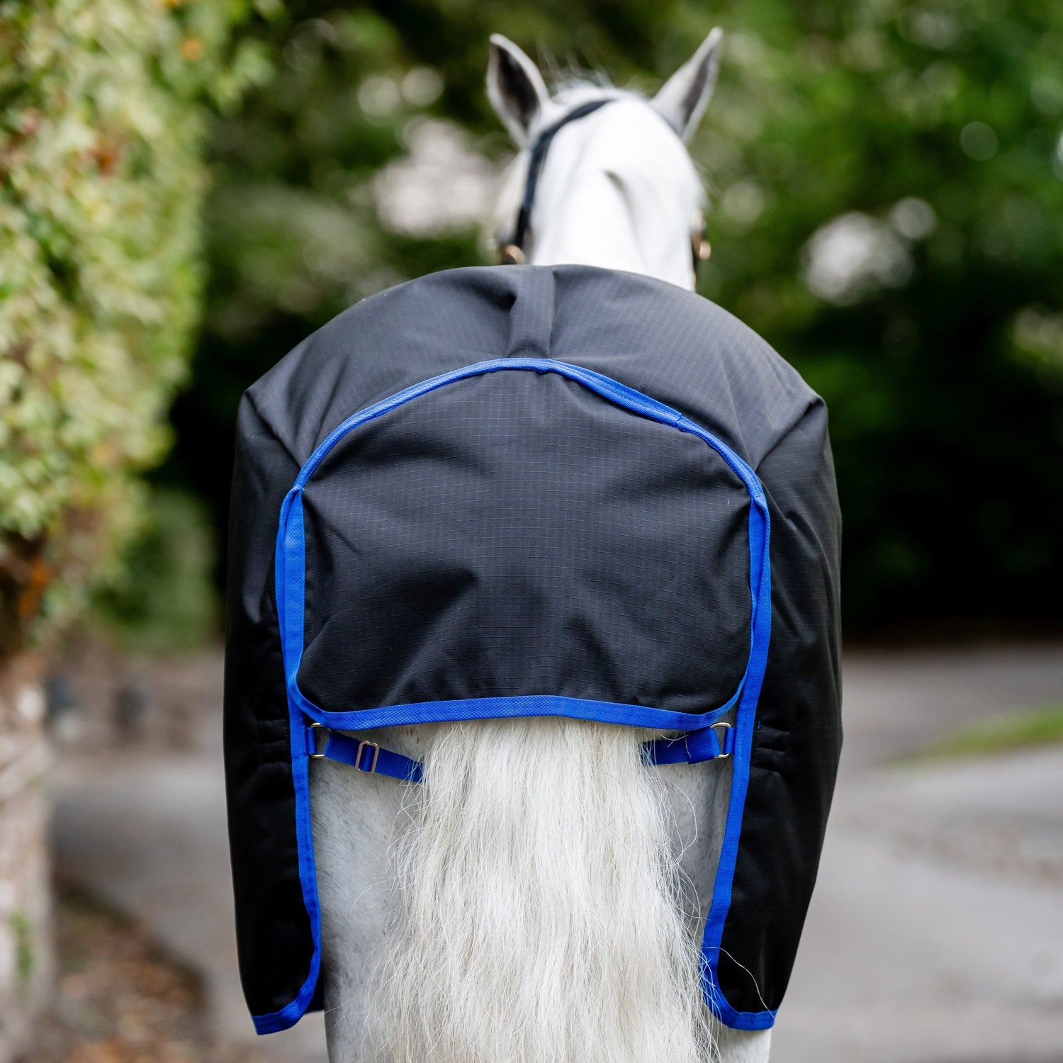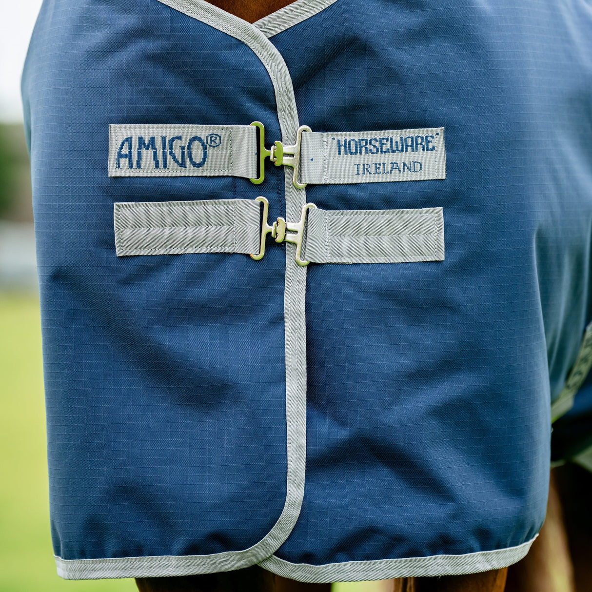 Features of this rug include a 900D Ripstop waterproof and breathable outer, shine enhancing, anti-static and anti-bacterial lining, straight front closure, and two cross surcingles for a secure fit. Easily customizable with liner and hood loops, this rug is compatible with the Amigo® Ripstop 900D Hood and the Horseware® liner system (sold separatley). A tail strap helps to keep this rug secure and prevent the blanket from shifting.