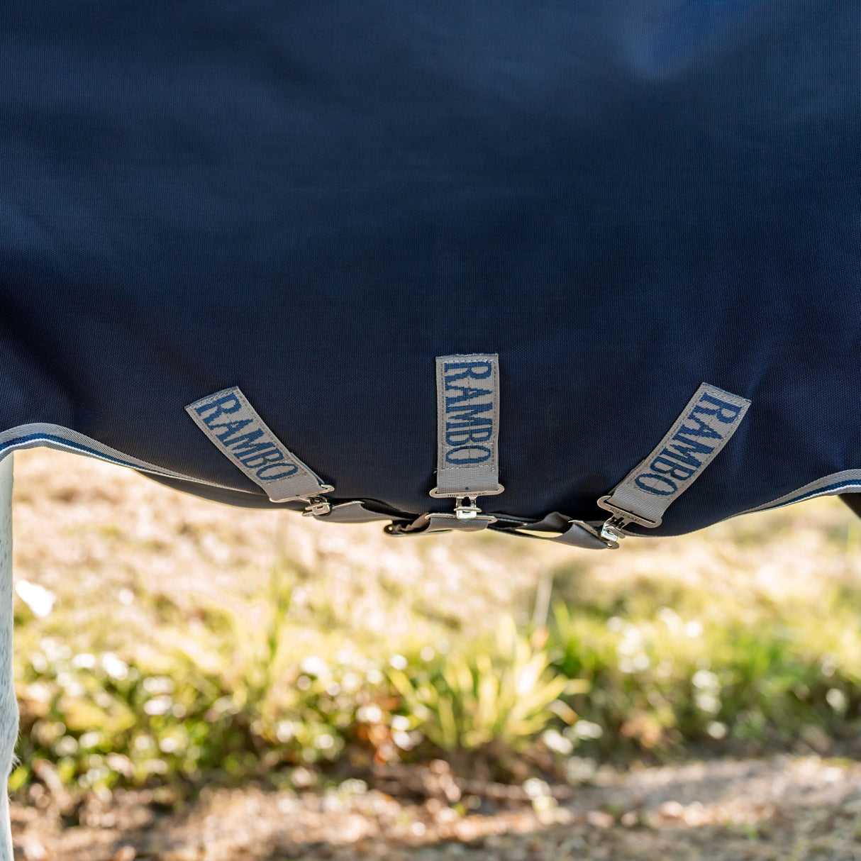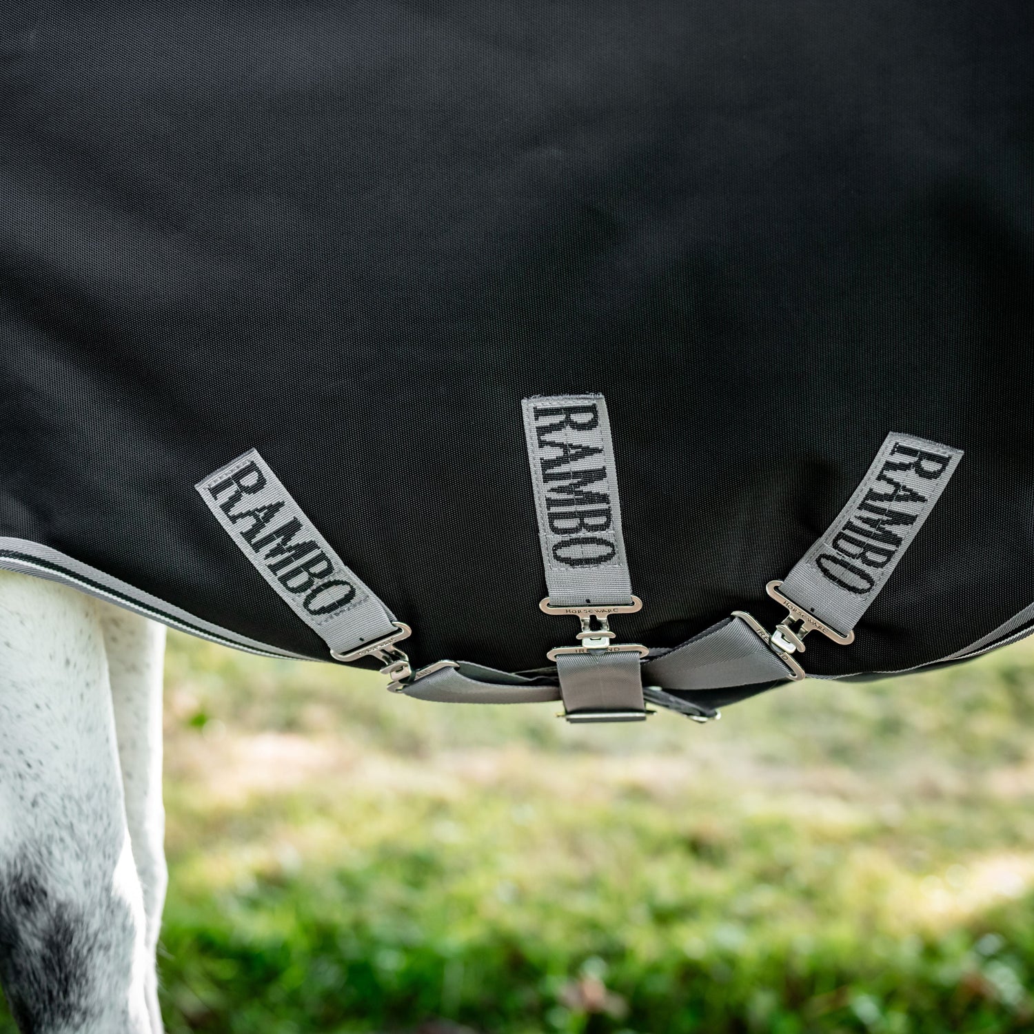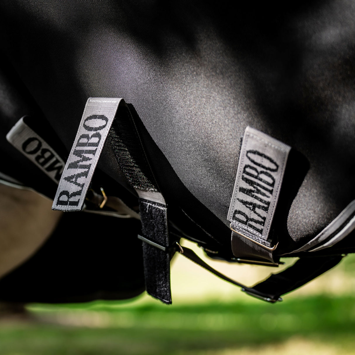 Other details you'll both love include a wipe-clean tail cord, reflective strips, three crossed removable surcingle straps incorporating the Rambo® Safety Surcingle System and anti-bacterial, anti-static, shine-enhancing embossed lining.