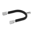 Spurs with fixed spur guard and nylon spur straps, rust-free. The fixed spur guard prevents the spur from slipping and protects riding boots from damage, pair.