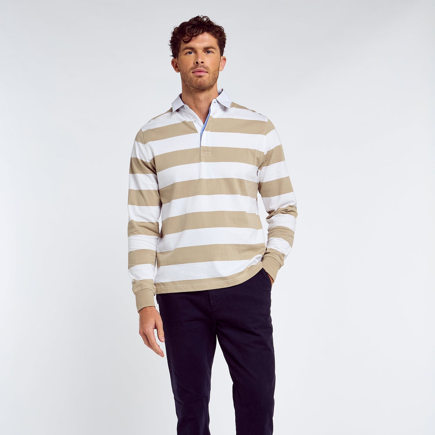 An enduring traditional style, the Dubarry Goresbridge rugby top will be worn again and again. Made in durable cotton jersey with a crisp striped pattern, it has both a nautical and sporting feel, ideal for active weekends. Alternatively, slip it on for some no fuss, no brainer downtime and amble your weekend away in comfort.