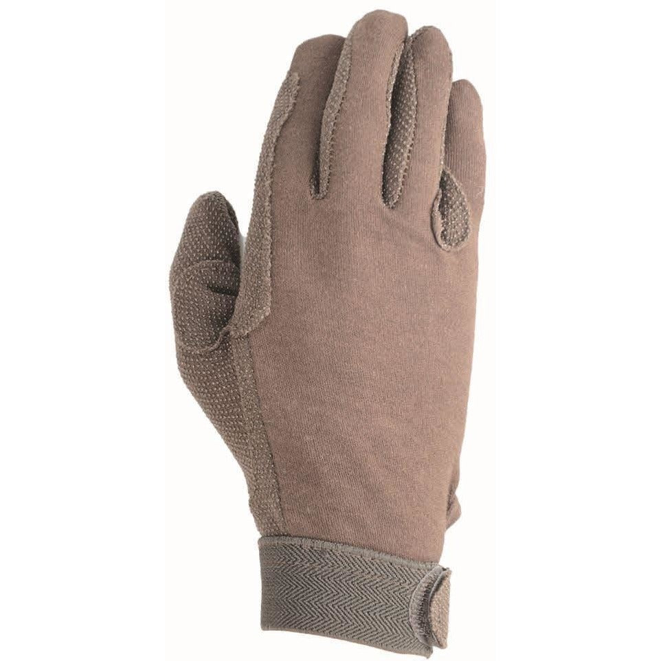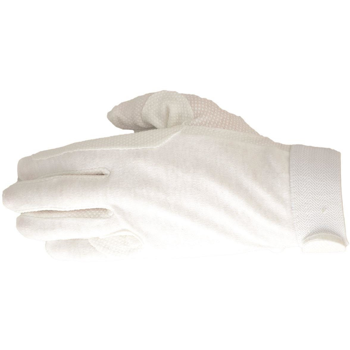 Gants tricotés 100 % coton avec poignées à boutons sur la paume. Dragonnes à fermeture velcro. Lavable en machine.