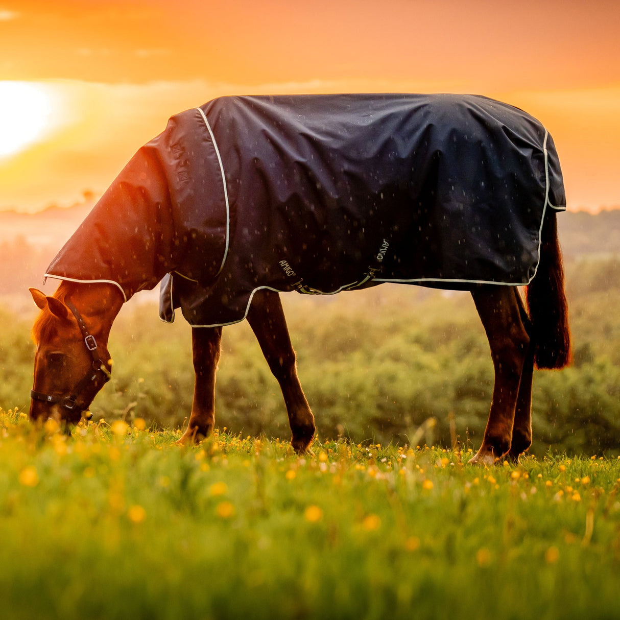 Crafted from a strong 900D Ripstop Polyester outer, this turnout is waterproof and breathable, providing reliable protection against the elements. The 100g fiberfill insulation offers lightweight warmth, while the shine-enhancing, anti-static and anti-bacterial lining ensures a smooth feel against your horse’s coat, promoting coat health and hygiene of the rug.