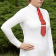 This beautifully crafted and meticulously designed long-sleeved show shirt not only offers the perfect fit but also benefits from a buttery soft material with advanced breathability, four-way stretch, and anti-UV (50+) properties. Tailored to perfection, it features a stiff, crisp collar with pin holes and slimline cuffs for the picture-perfect look when worn under a competition jacket.