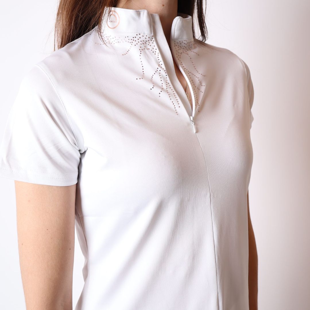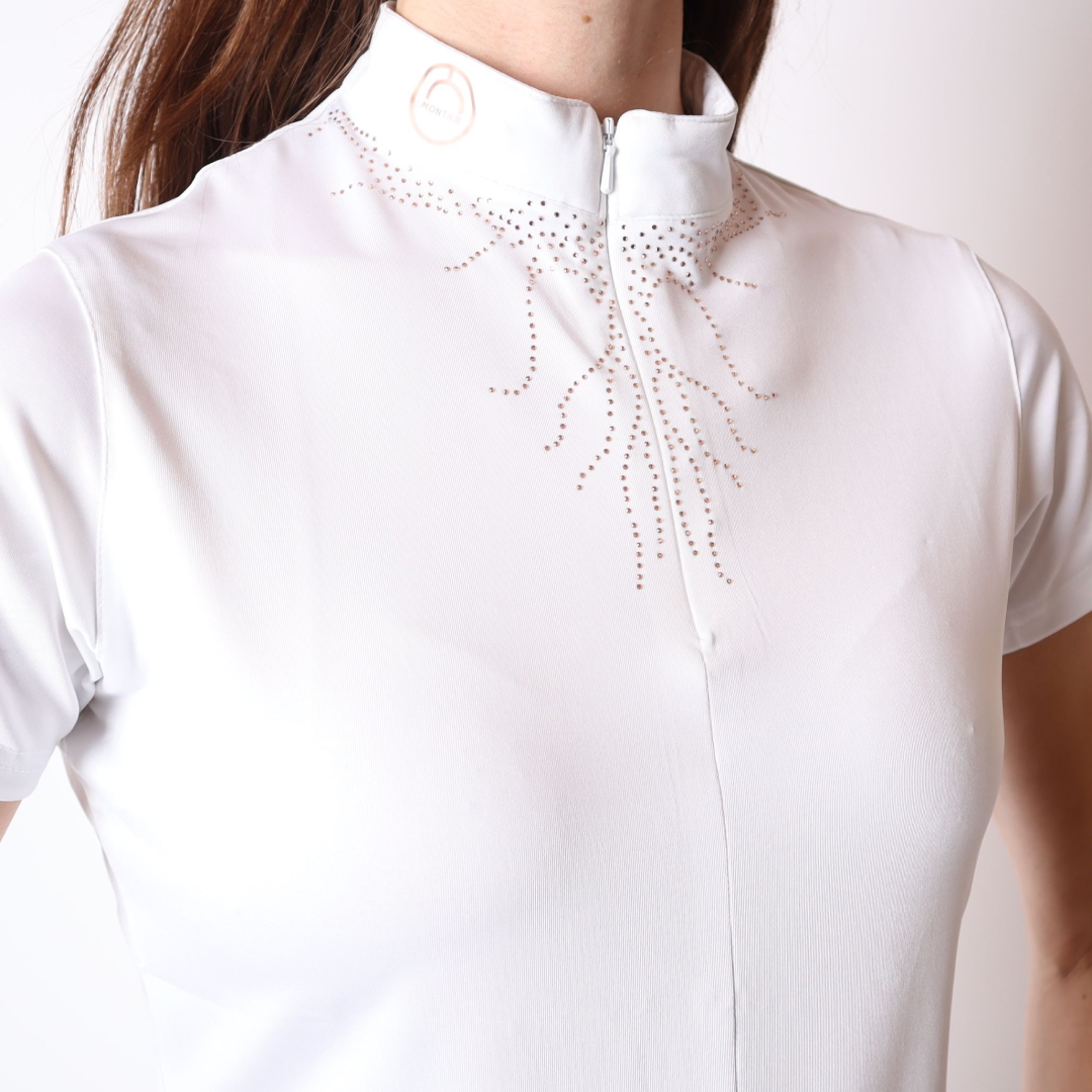Le polo Montar Femka a un look très sophistiqué avec de superbes liennes de cristaux or rose autour du cou et sur le haut de la poitrine. Les liennes en cristal d'or rose ne sont séparées que par une fermeture éclair au cou parfaitement cachée. Le polo est fabriqué dans le tissu MON-TECH hautement fonctionnel qui garantit une sensation hautement respirante et confortable pendant la conduite.