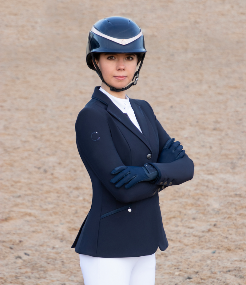 Charles Owen Halo Luxe Wide Peak Navy/Platinum Gloss Riding Hat