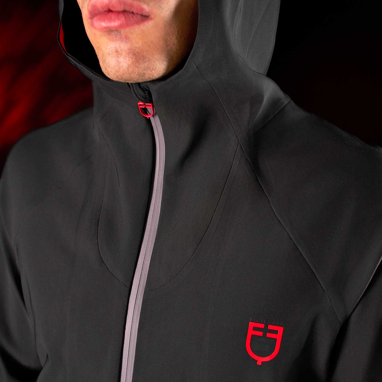 Equestro Ridertechnology collection men's slim fit technical hooded sweatshirt in technical fabric with heat-sealed seams and comfortable side pockets with zip.