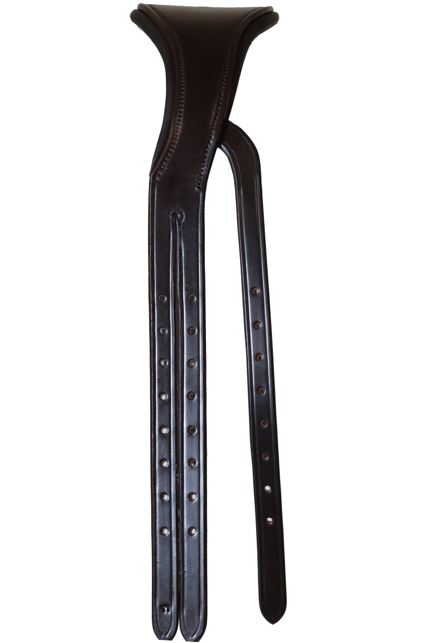 The throat lash strap has been strategically integrated into the headpiece to reduce the bulk in the sensitive TMJ area and allowing for the noseband and cheek piece buckles to lie flat against the horses skin.